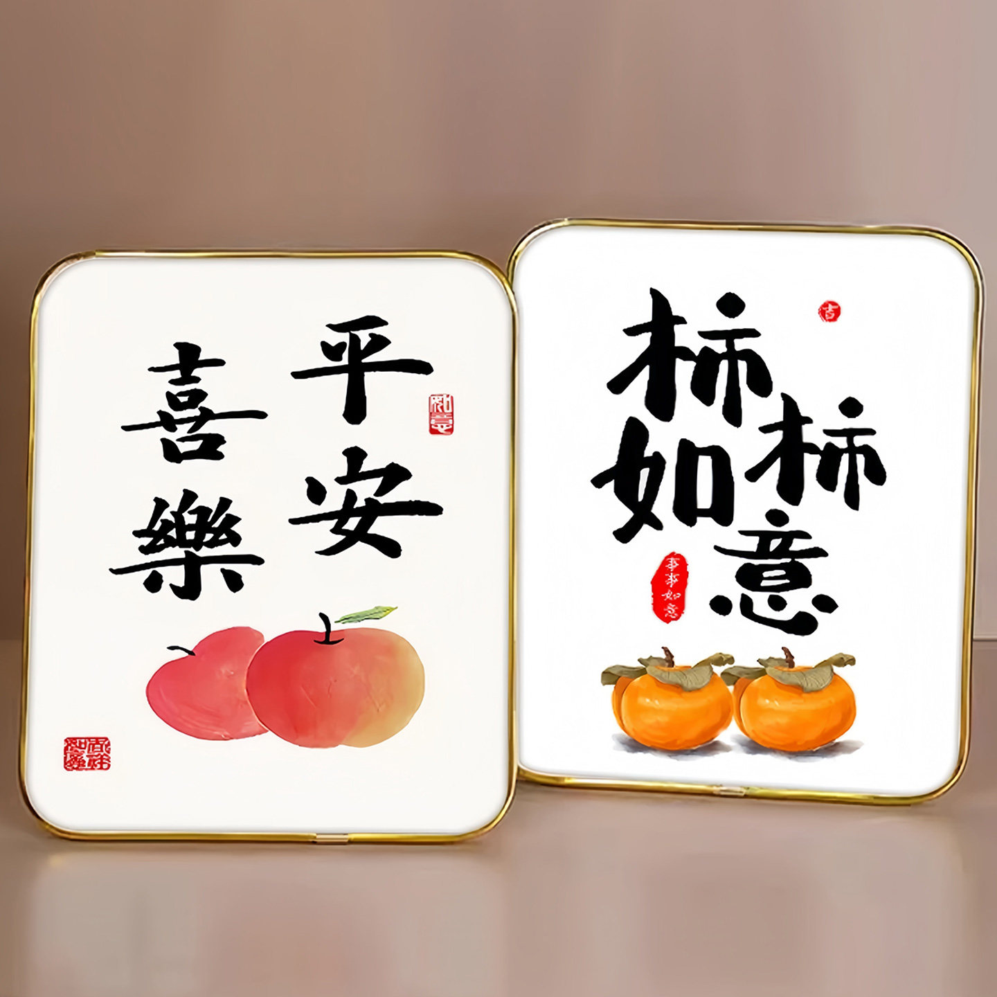 平安喜乐装 饰摆件电视柜搬新家心想事成客厅卧室相框摆台柿柿如意