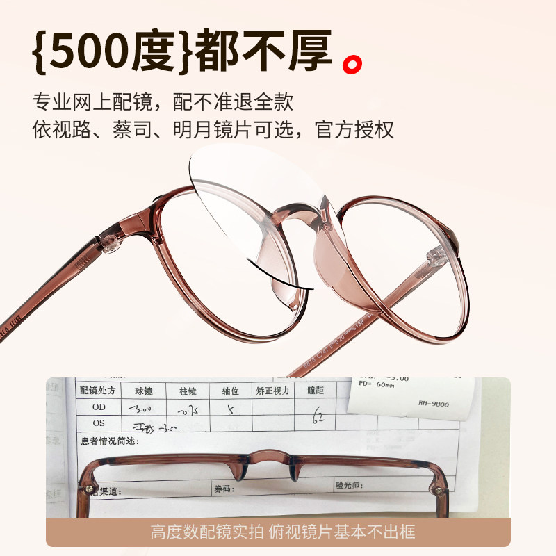 普莱斯冷茶色眼镜近视女度数可配专业配镜欧阳娜娜同款 框架防蓝光