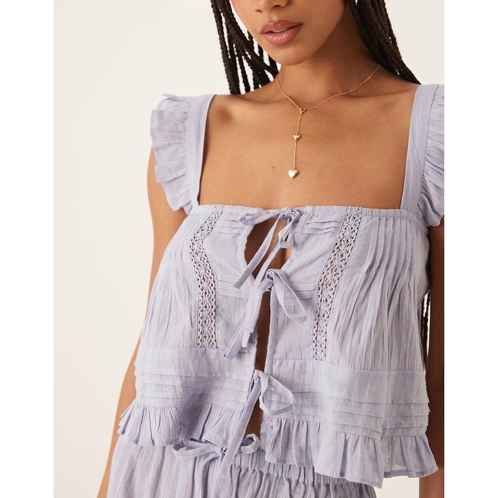 设计前襟绑带背心短款 1h可退 frilly 女士 造旧紫色 香港直邮ASOS