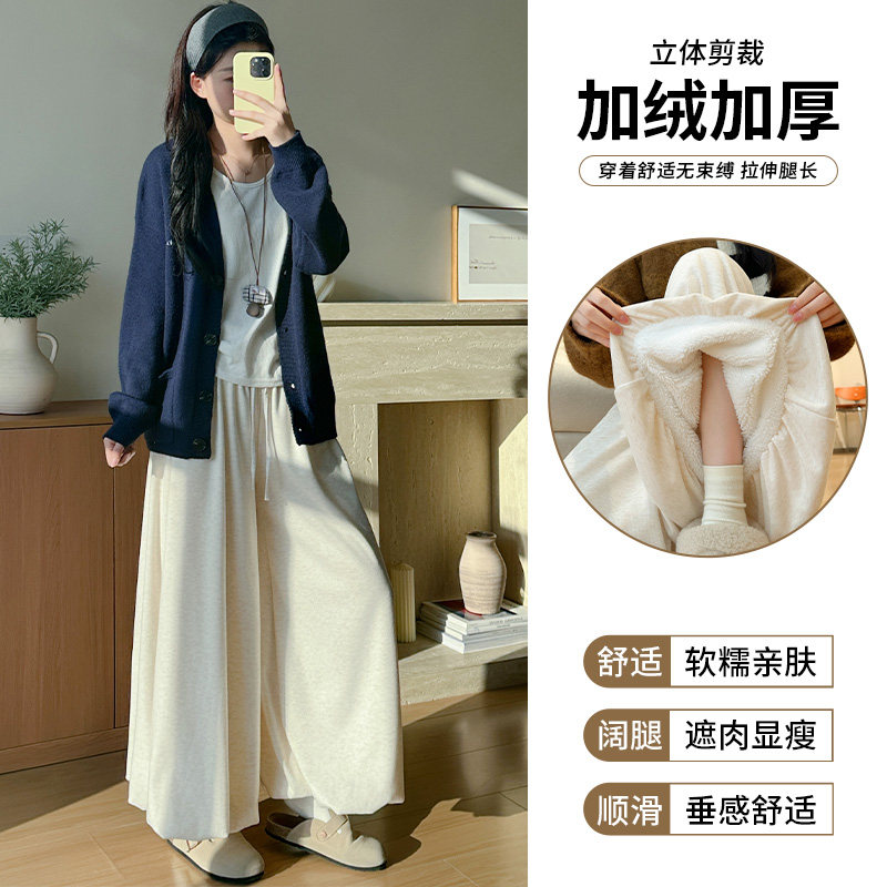 子 小个子休闲高腰宽松阔腿糯米裤 加绒加厚花苞裙裤 女2025秋冬新款