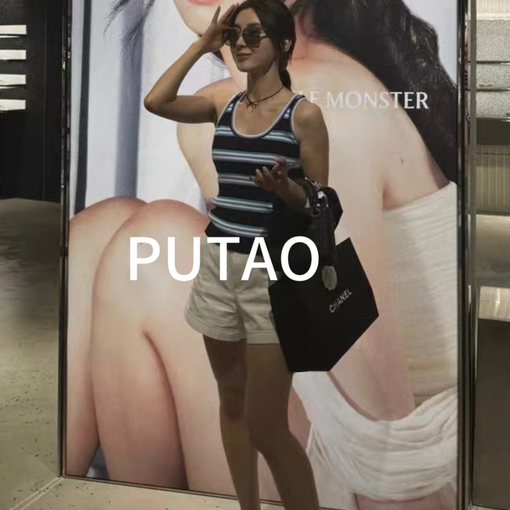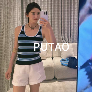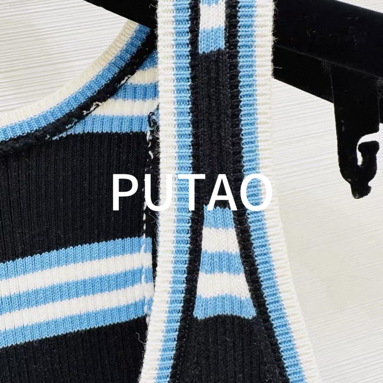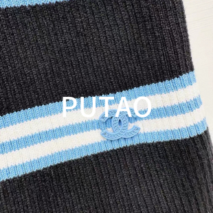 海外代购 正品 24A蓝色条纹黑白拼色针织背心 香奈儿 CHANEL