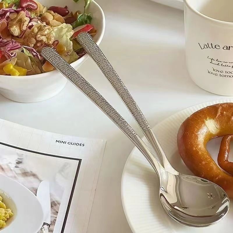 不锈钢304锤纹锻打勺子网红高级感韩式 拌饭勺吃饭调羹长柄勺大号