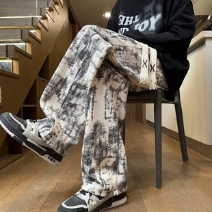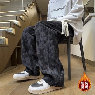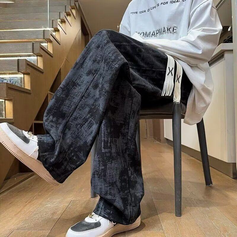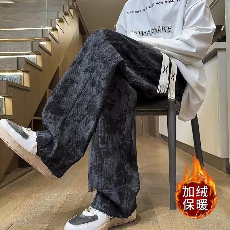 子阔腿直筒2025秋冬加绒潮牌宽松百搭休闲裤 扎染长裤 灯芯绒春秋裤