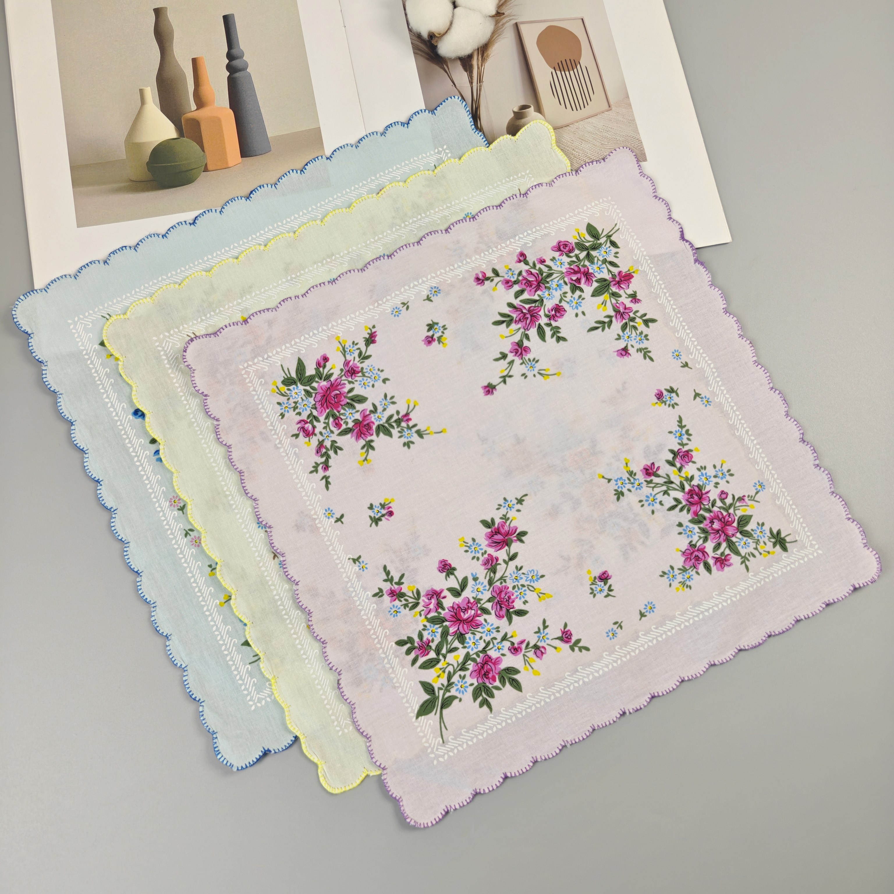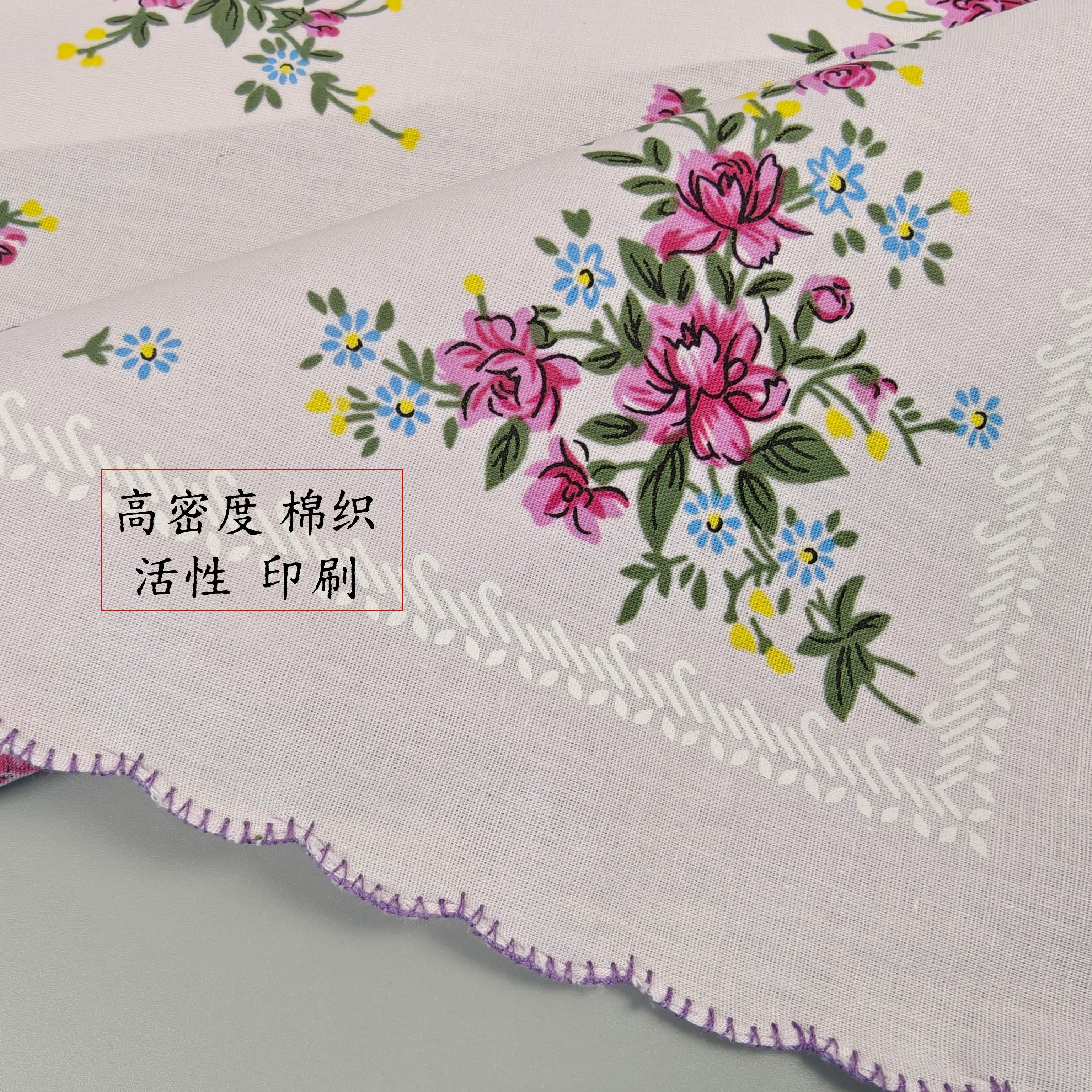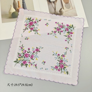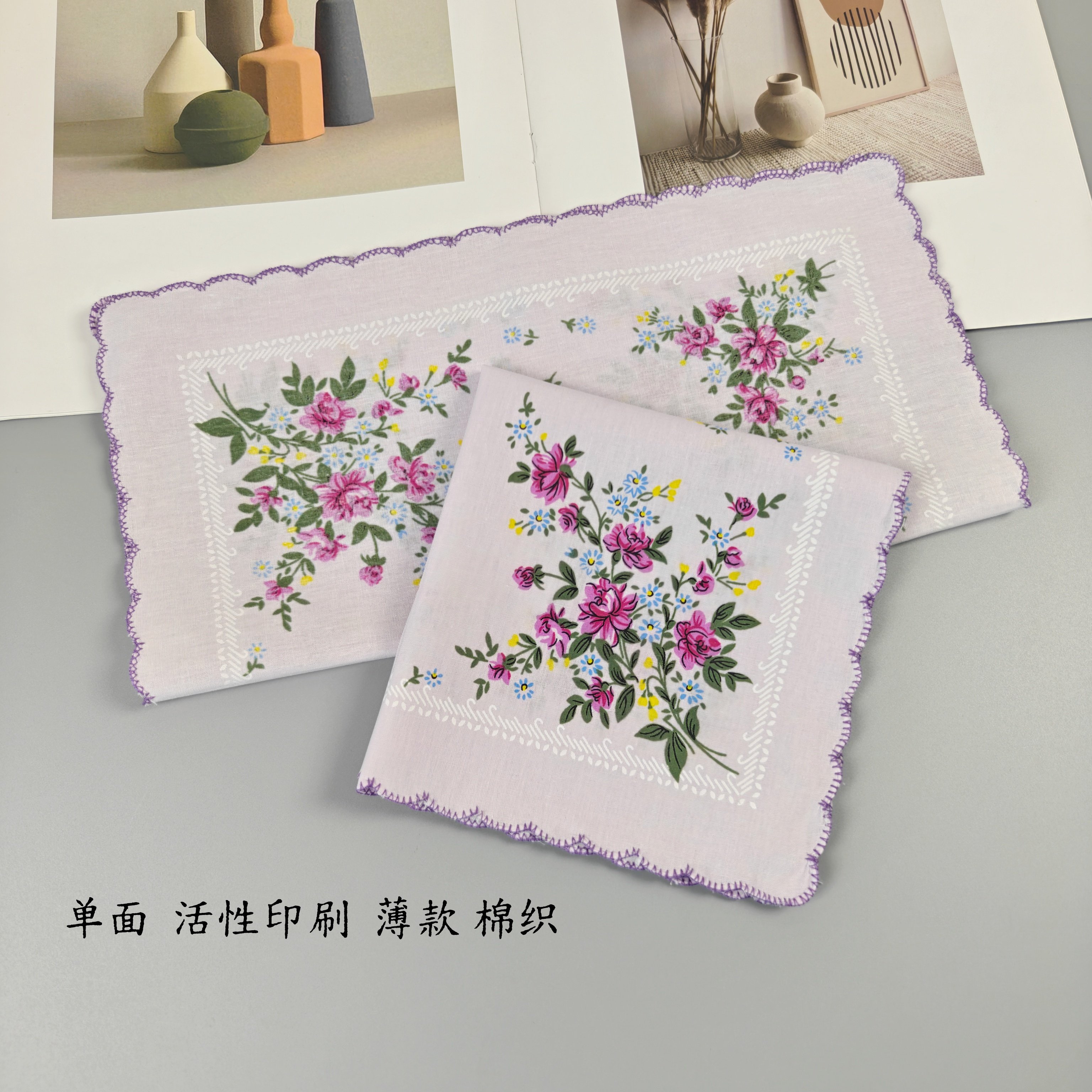 全棉活性印花手帕女士手帕月牙边复古吸汗清爽小手帕女士手绢新款
