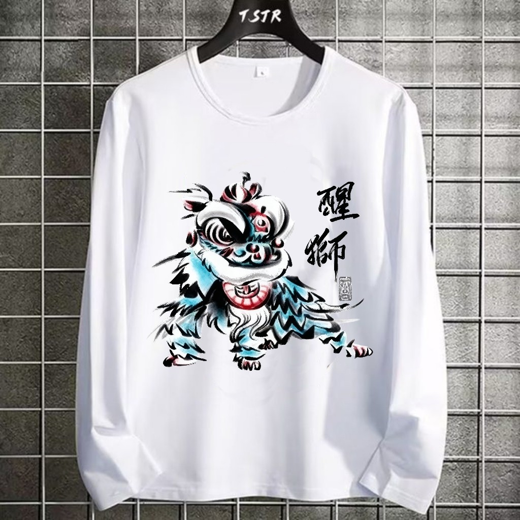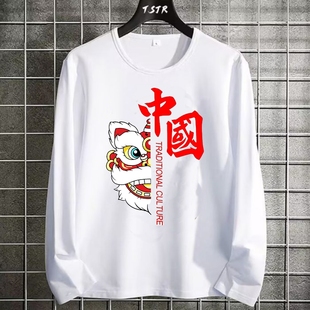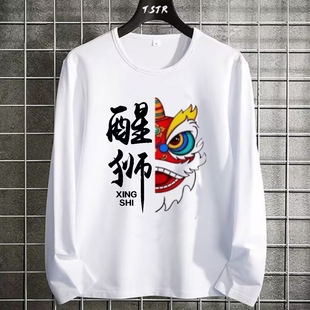 舞狮醒狮图案印花长袖 定制活动衣服学生班服t恤 T恤学生演出文化衫