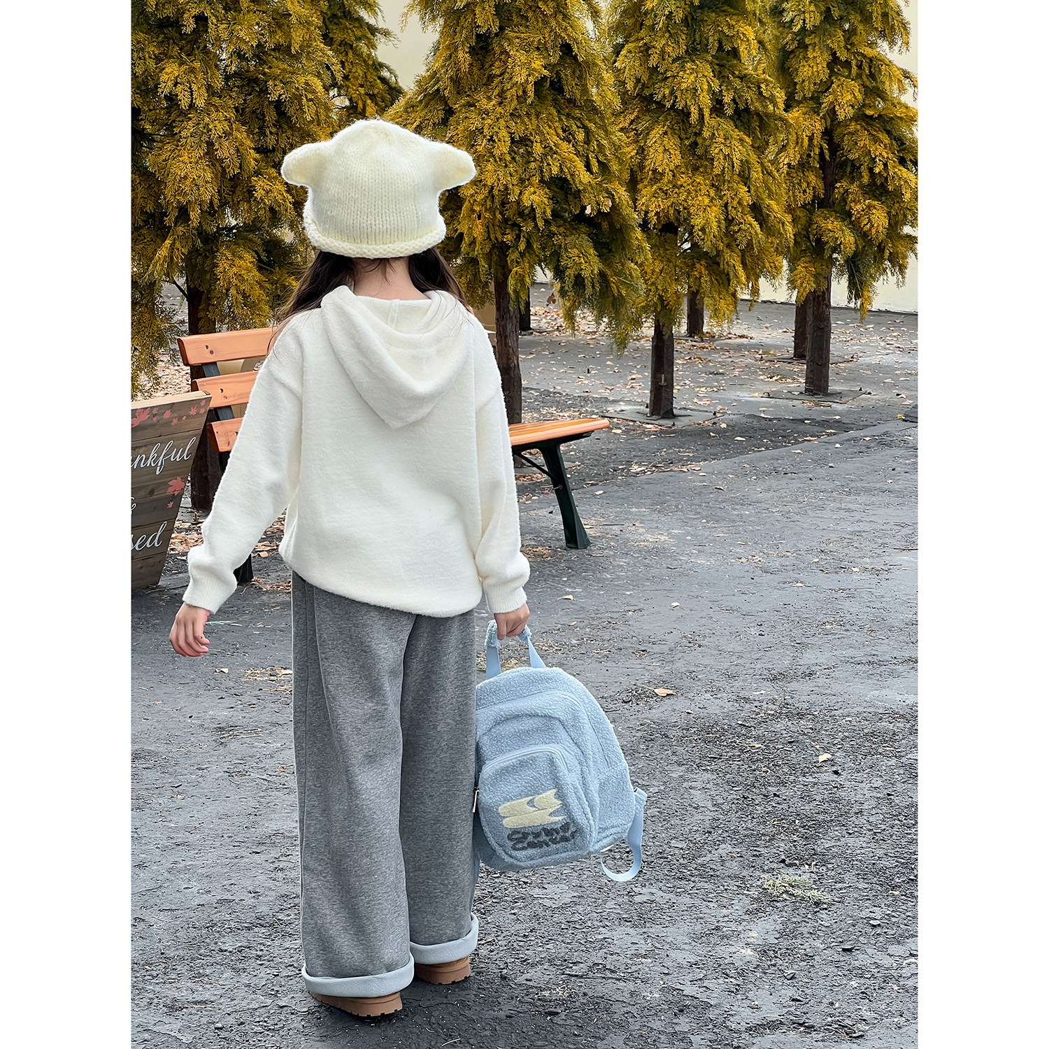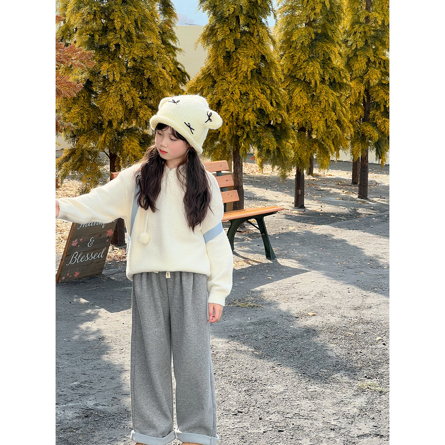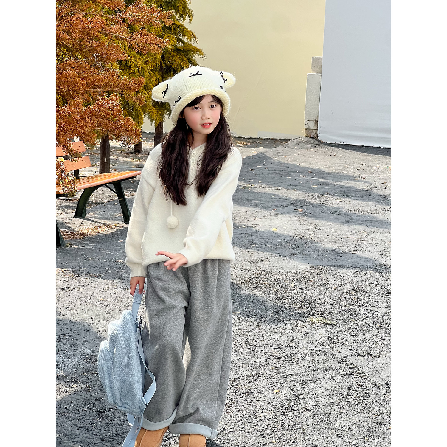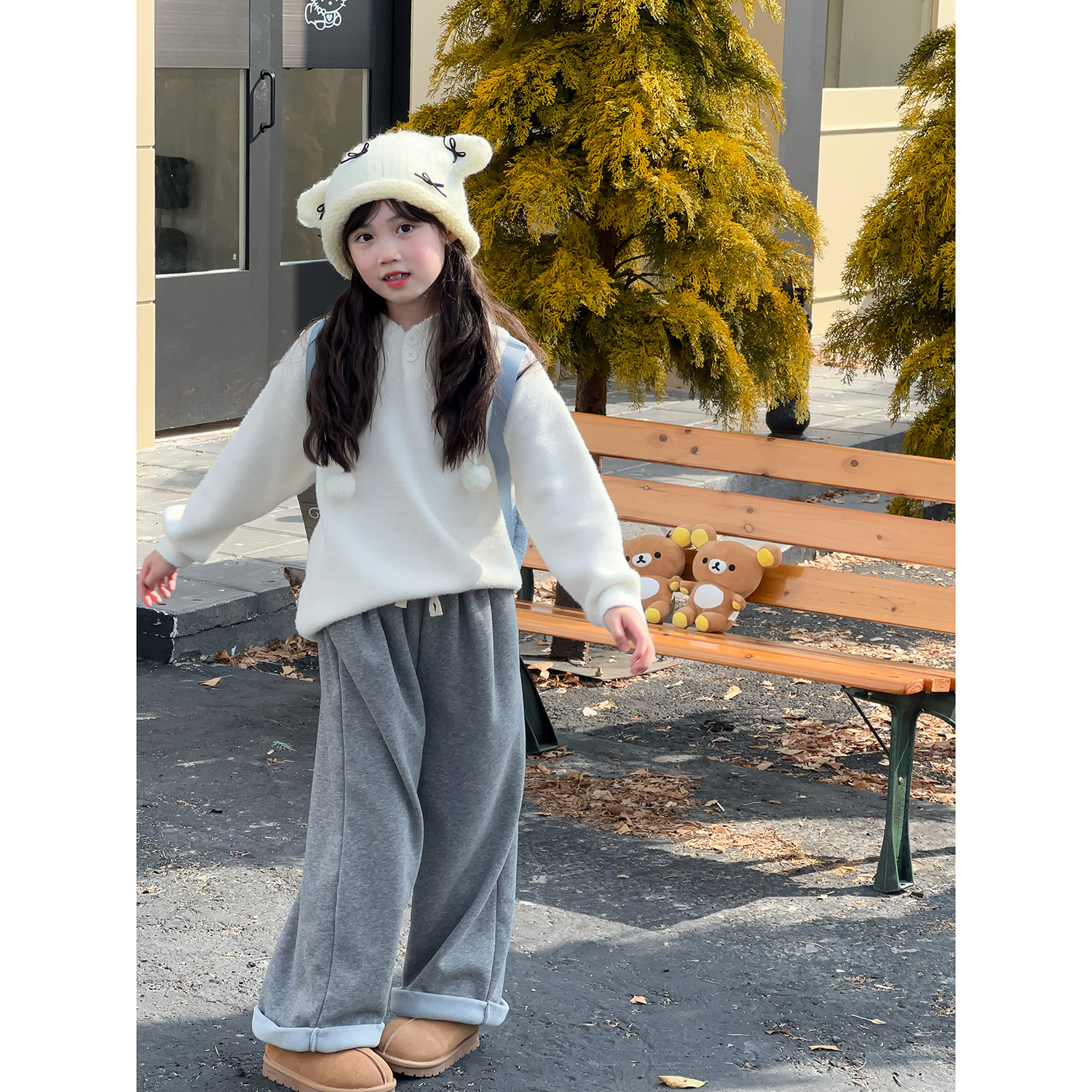 显瘦垂感休闲裤 格雷系加绒黑灰色阔腿慵懒风格 大码 子女秋冬季 子裤