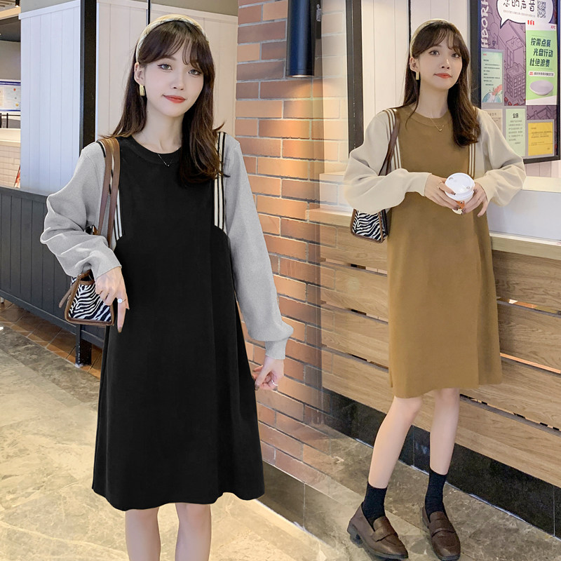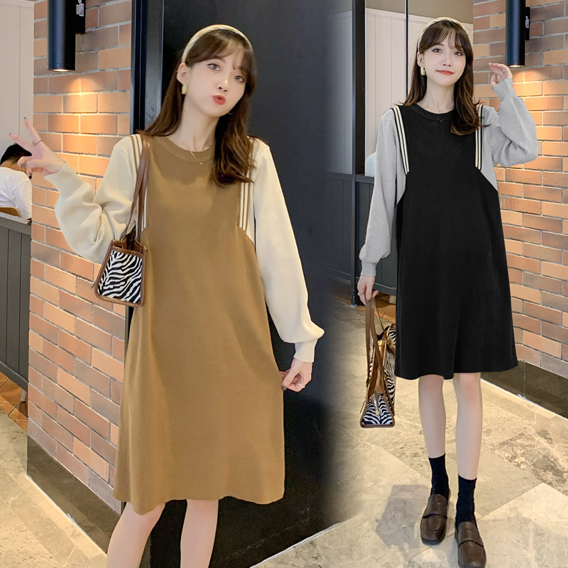 新款 套装 孕妇装 上衣春秋季 宽松假两件连衣裙洋气针织毛衣韩版 秋装