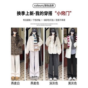 休闲直筒阔腿裤 加绒加厚外穿棉裤 女2025秋冬新款 灰色羊羔绒糯米裤