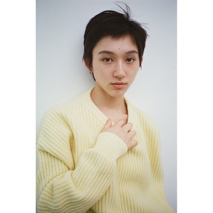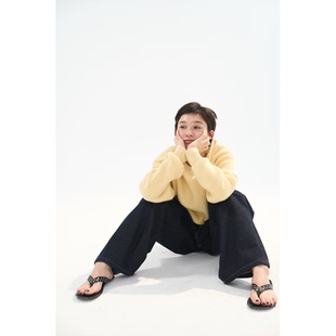 seeseao浅黄套头毛衣针织宽松慵懒亲秋冬薄款 外穿内搭女款