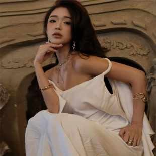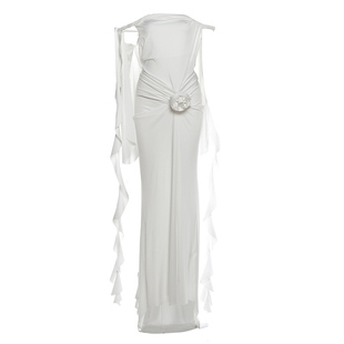 不规则飘带立体花拖尾连衣裙女秋 浮生若梦典雅玫瑰点缀 Sisjuly