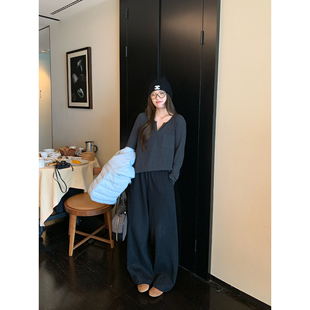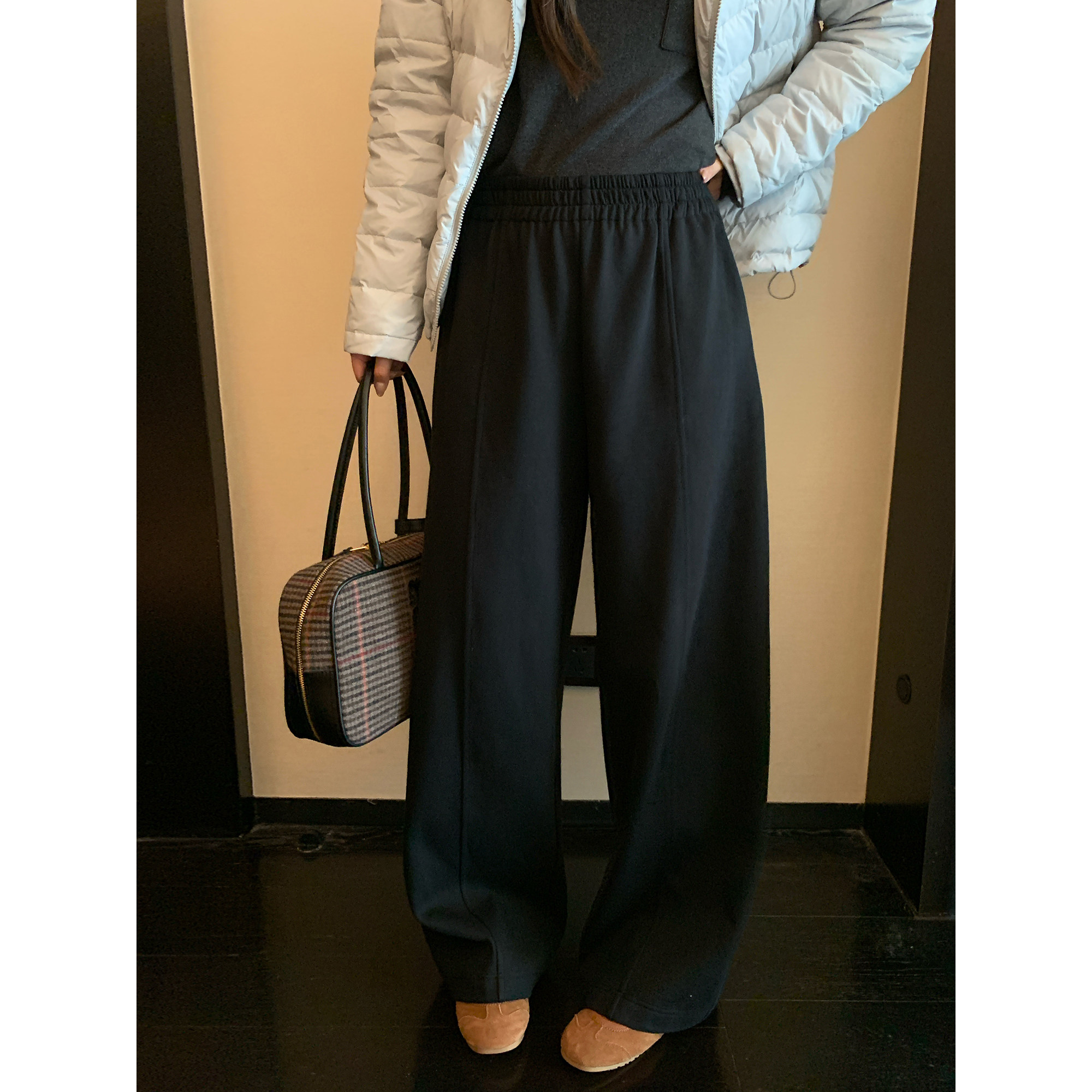 气质阔腿裤 胖mm时尚 女 秋冬100棉松紧腰宽松弯刀休闲裤 NAZ那子大码