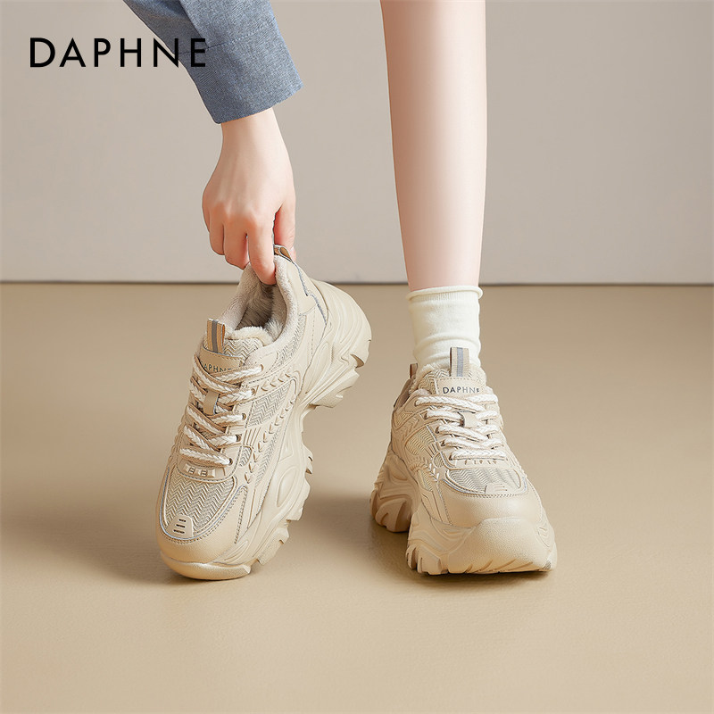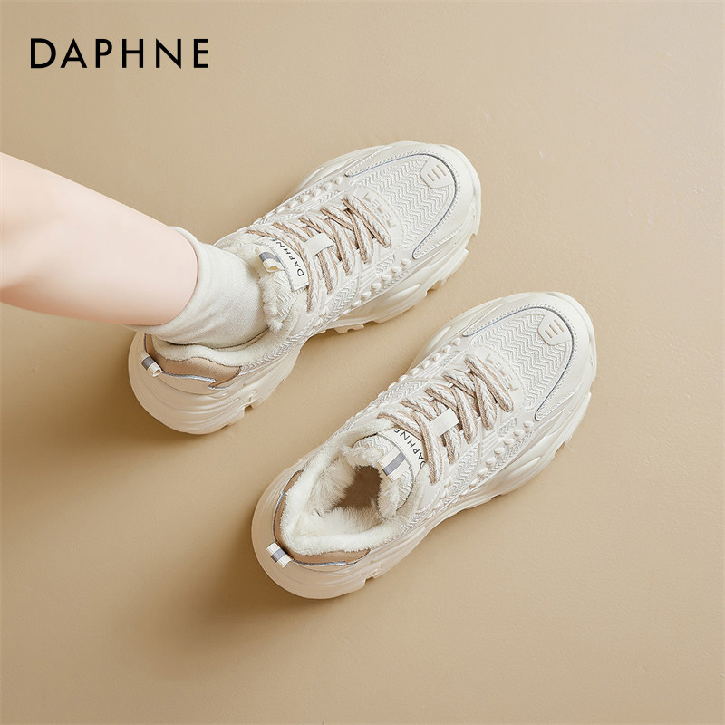 增高百搭雪地靴运动小白鞋 达芙妮厚底加绒老爹鞋 冬季 2025新款 女款