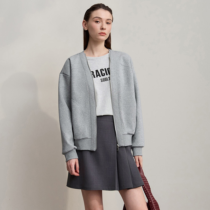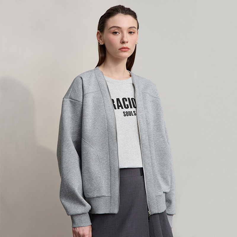 复古休闲减龄V领拉链卫衣外套女春秋 2026秋韩版 Amii 复古风