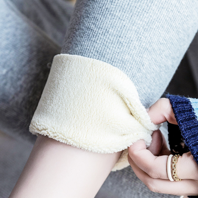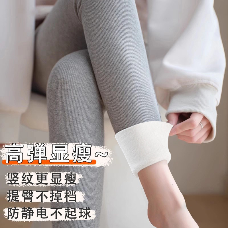高腰棉毛线衬裤 女外穿竖纹显瘦保暖秋裤 冬 2025新款 灰色加绒打底裤