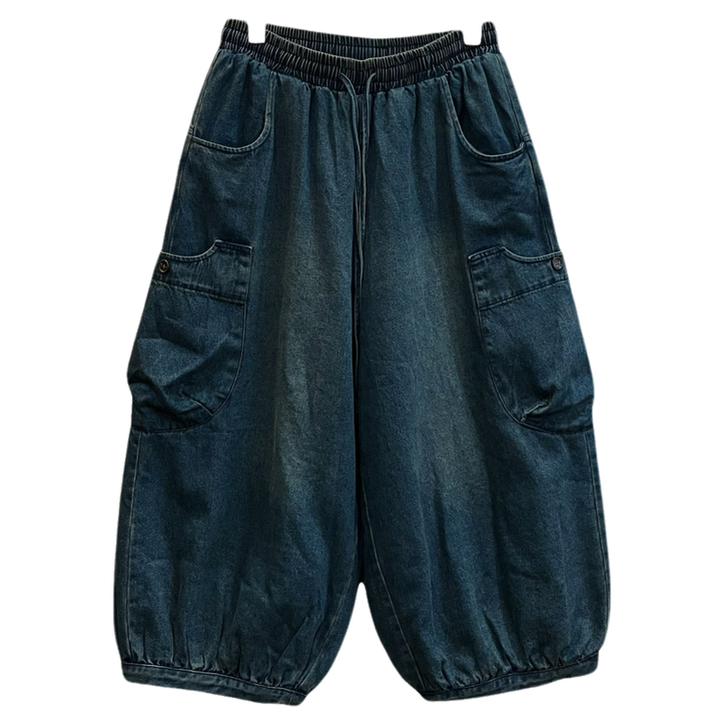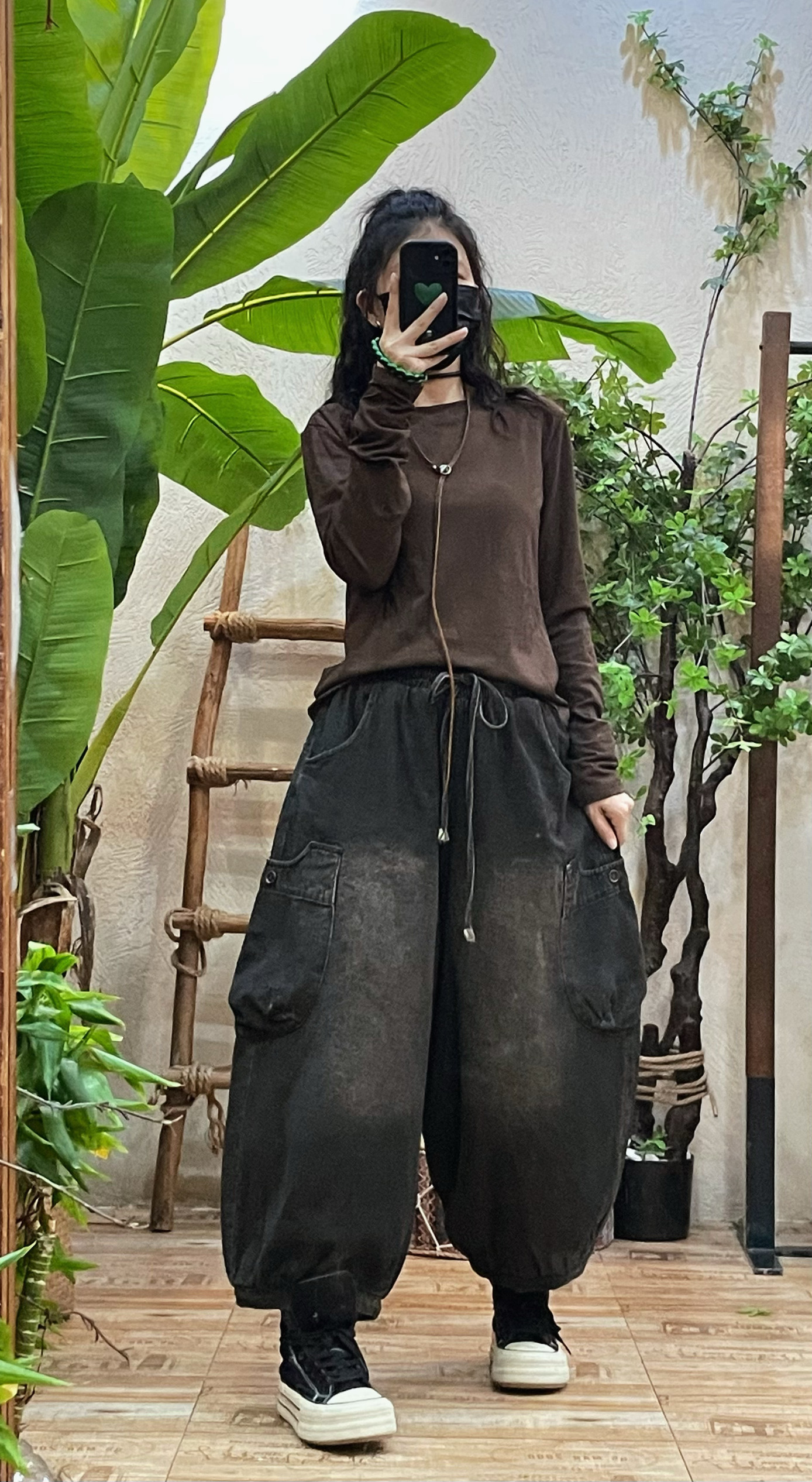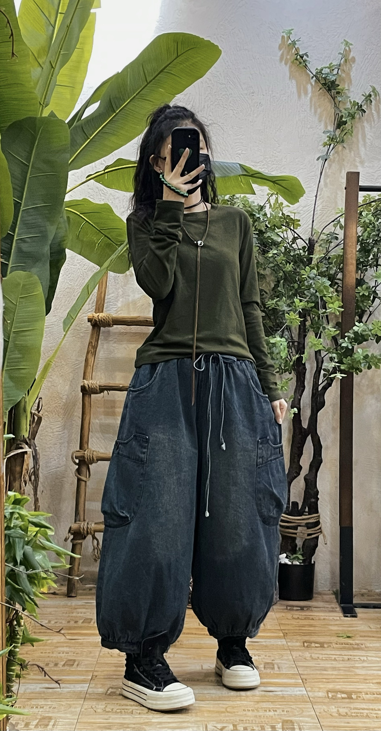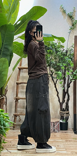 女高腰显瘦阔腿休闲长裤 pusumede 牛仔裤 复古宽松直筒裤 雅丹都市