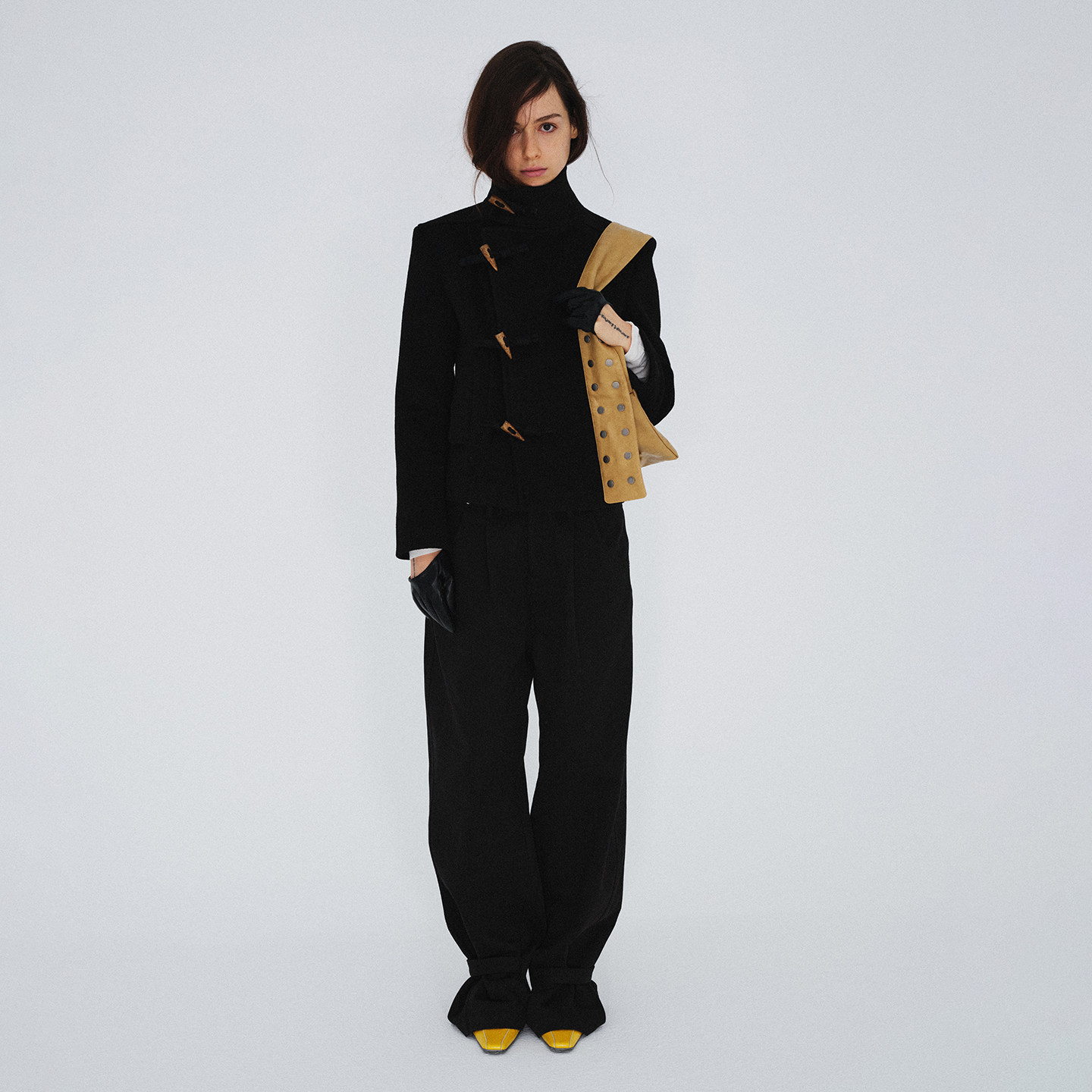 CLOUD 立领毛呢外套小个子显瘦羊毛大衣女 WILD白云野边牛角扣短款
