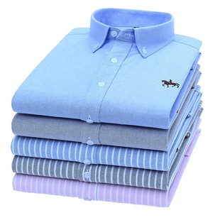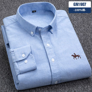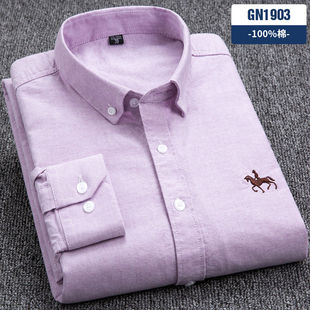 男装 保罗100%纯棉男士 中青年休闲纯色全棉衬衣大码 衬衫 牛津纺长袖
