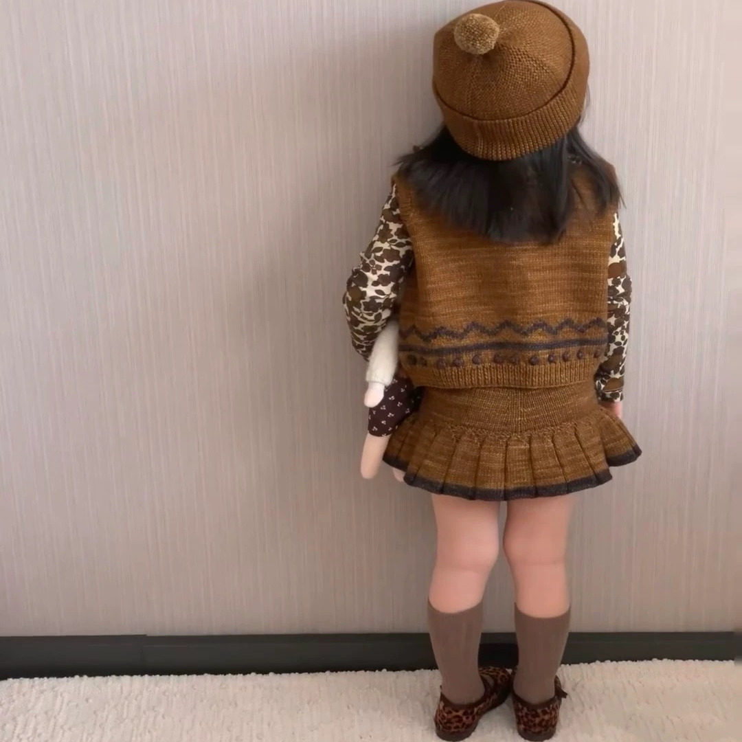 2873 上衣两件套装 秋冬穿搭女新款 宽松复古背心马甲学院风衬衫