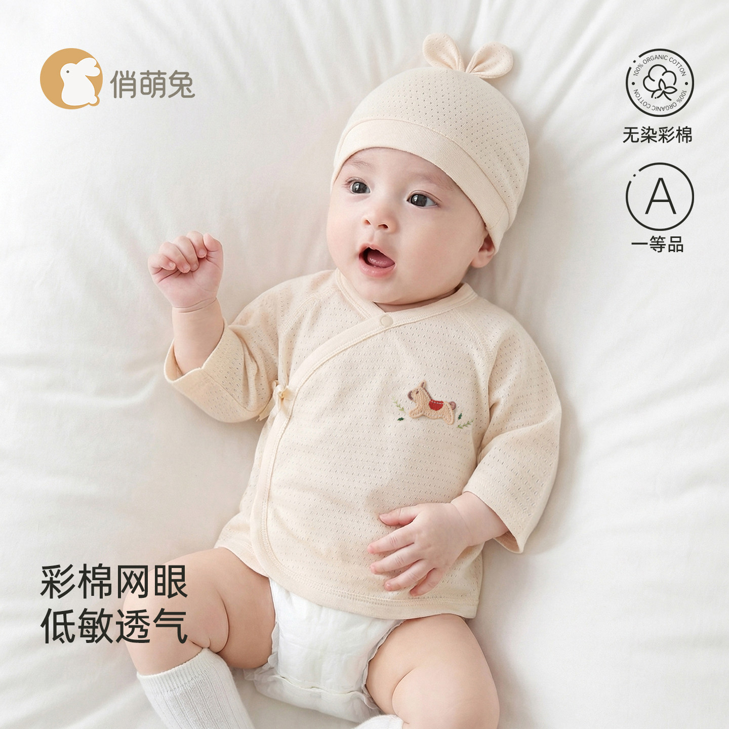 俏萌兔半背衣初生婴儿衣服a类纯棉52码 宝宝和尚服 新生儿上衣48码