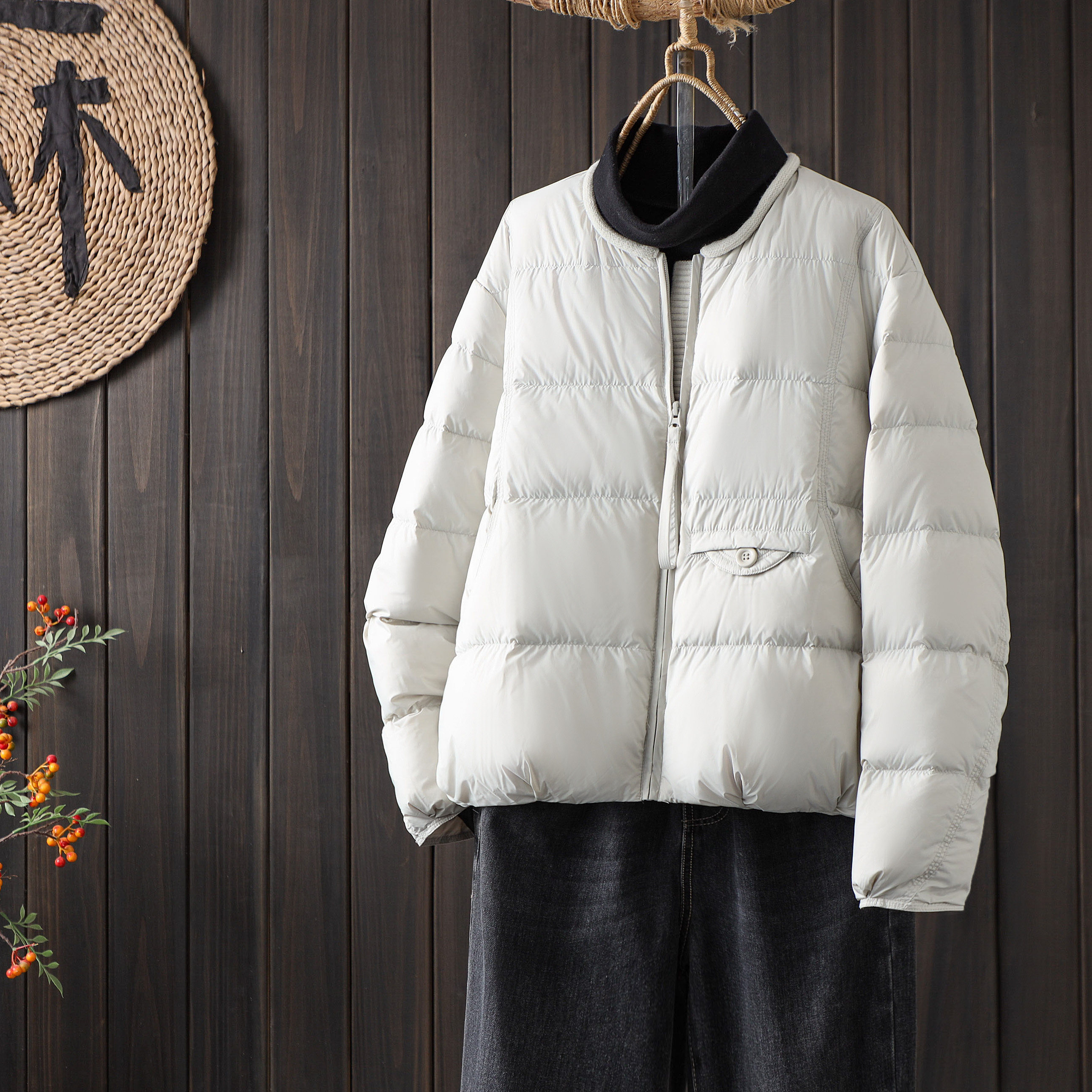 保暖外套 减龄圆领90白鸭绒拉链时尚 蓬松羽绒服短款 女2025秋冬新款