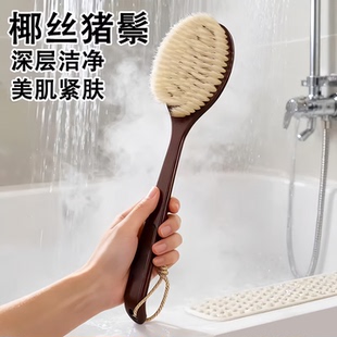 椰丝鬃毛沐浴刷加长猪鬃毛干刷湿刷2合1仿手掌弧形长柄男女搓澡刷