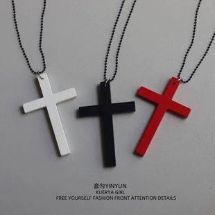 atmshop重工朋克亚文化十字架双层叠戴长项链暗黑哥特辣妹毛衣链