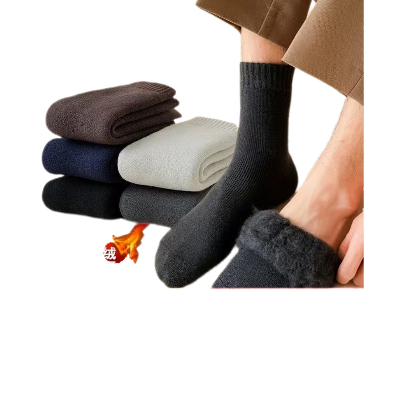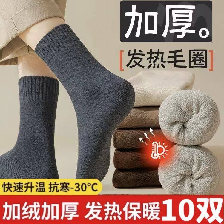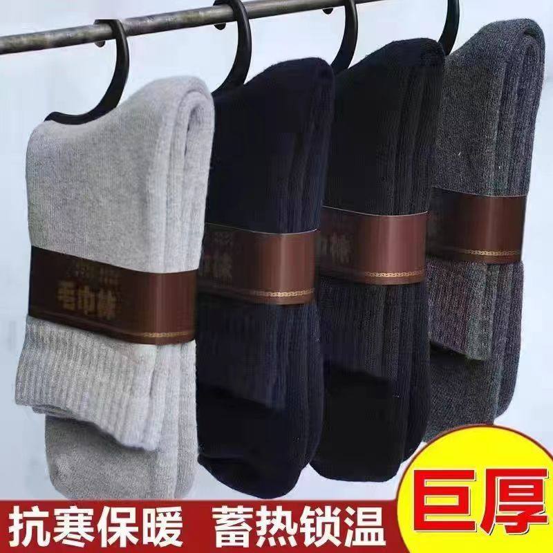 佐印袜子男士 中筒白色运动袜 冬纯棉纱线加厚长袜防臭抗菌吸汗男款