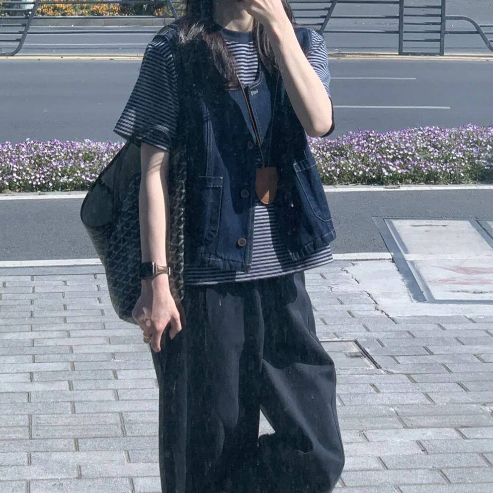 港味复古百搭叠穿圆领牛仔马甲女2025春夏季 上衣 休闲宽松显瘦无袖