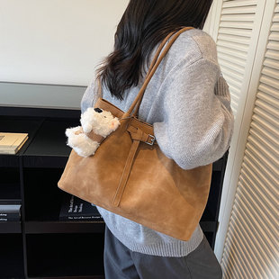 休闲单肩包女2023新款 原创上班上课通勤软皮包大容量简约托特大包
