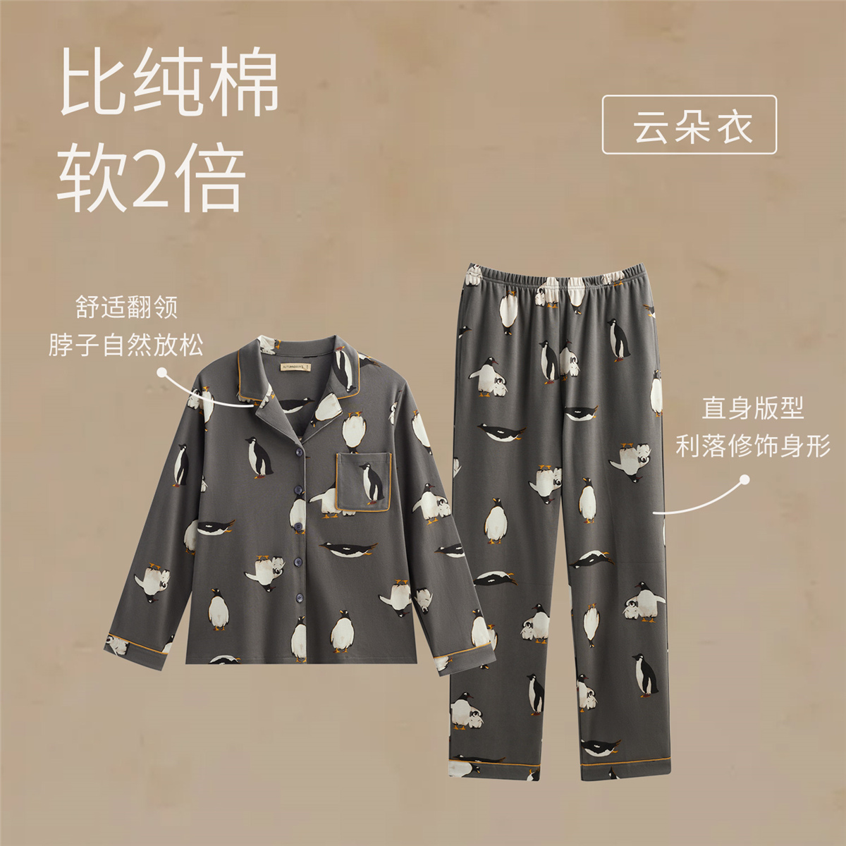 男女秋冬季 秋鹿 睡衣女2025款 情侣款 纯棉家居服可外穿 企鹅派对