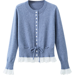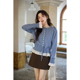 夕蒙2025新款 秋冬韩系气质设计感上衣宽松蕾丝拼接慵懒高级感毛衣