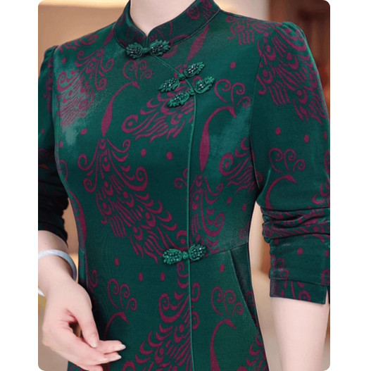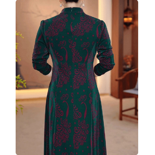 2026新款 改良旗袍裙F遮肉显瘦中老年气质妈妈连衣裙长裙 春秋长袖