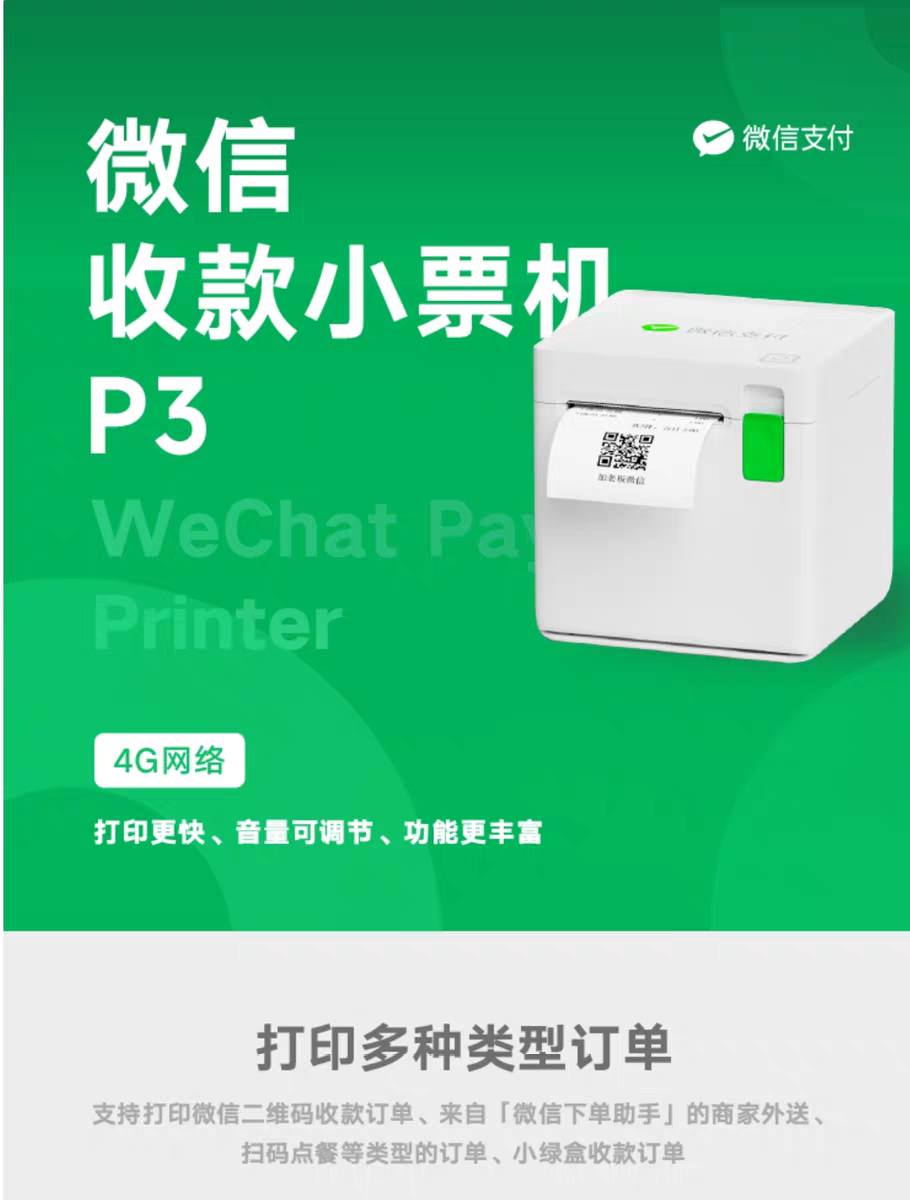 微信小票机P4扫码 小票自动云打印P2P3P5 点餐小****订单4G网络收款