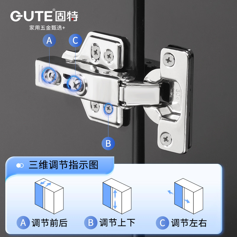固特阻尼304不锈钢橱柜门铰链飞机弹簧合页衣柜五金液压缓冲折叠