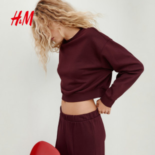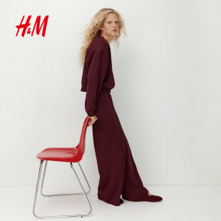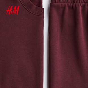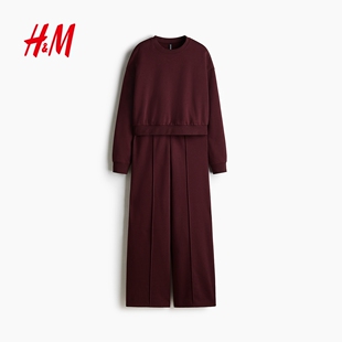 2025冬季 2件式 新款 酒红色时尚 1301759 HM女装 简约气质卫衣套装 套装