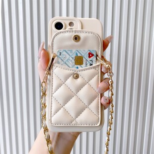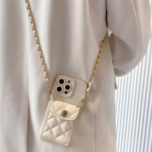 菱格小香风卡包适用iphone17promax苹果16pro手机壳13可背带15pro斜挎挂绳12高级山茶花14plus个性 XR防摔8p套