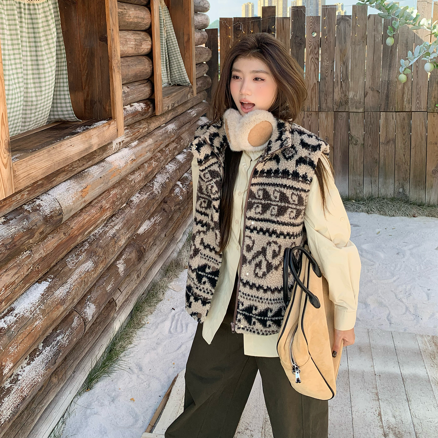 橘子树在哪儿费尔岛羊羔毛马甲外套女秋季 外搭宽松显瘦百搭马夹 款