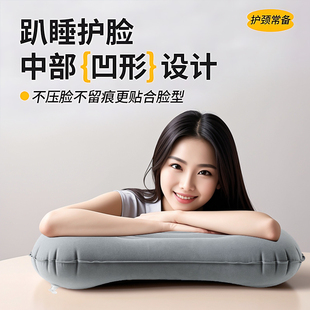 按压充气枕头飞机高铁长途坐车护腰靠垫户外旅行露营折叠便携枕头