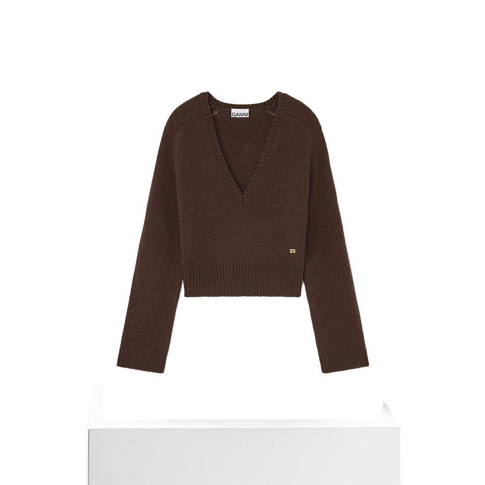 AW2025 棕色 Ganni GANNI Neck K2614869 Swe 女士针织衫