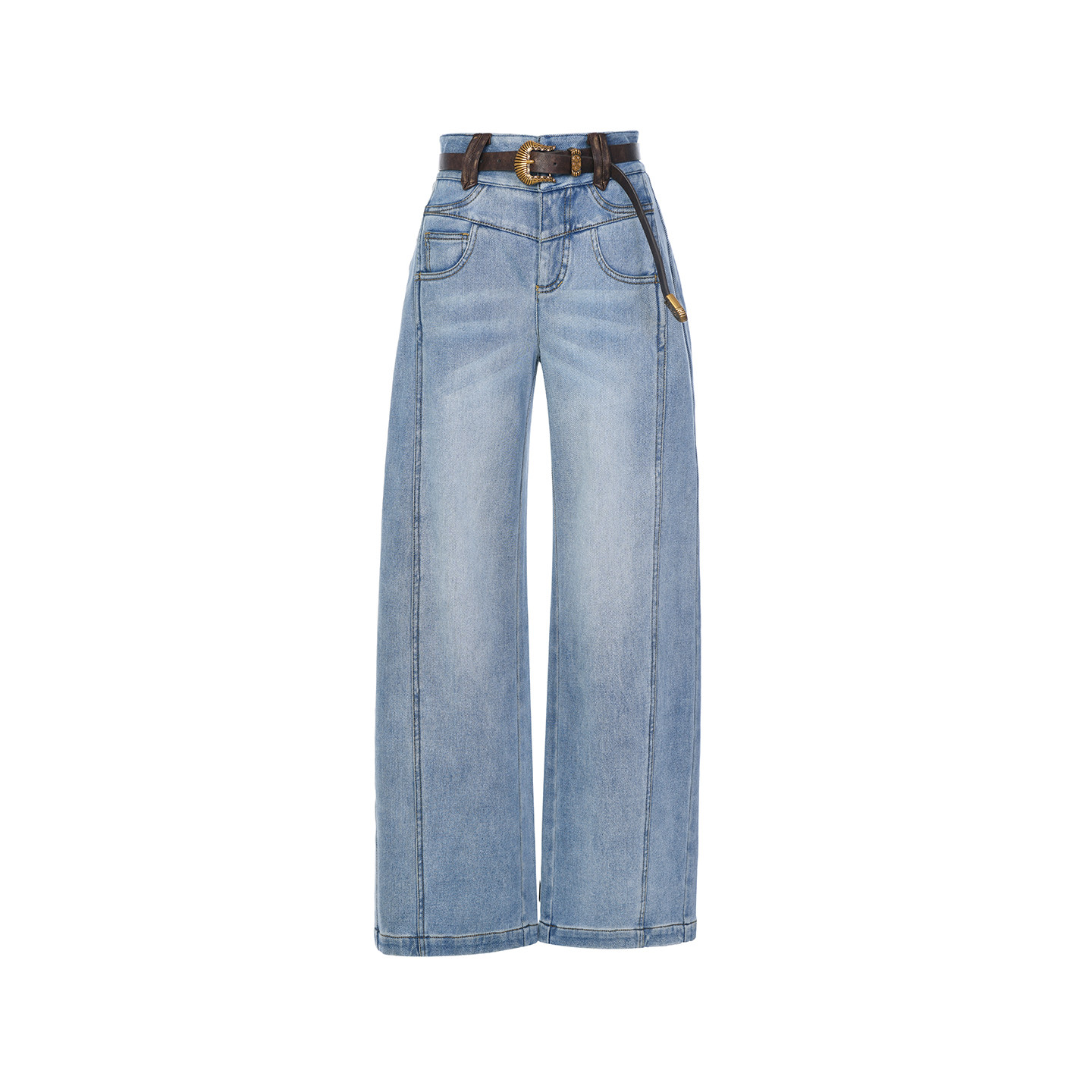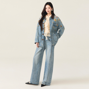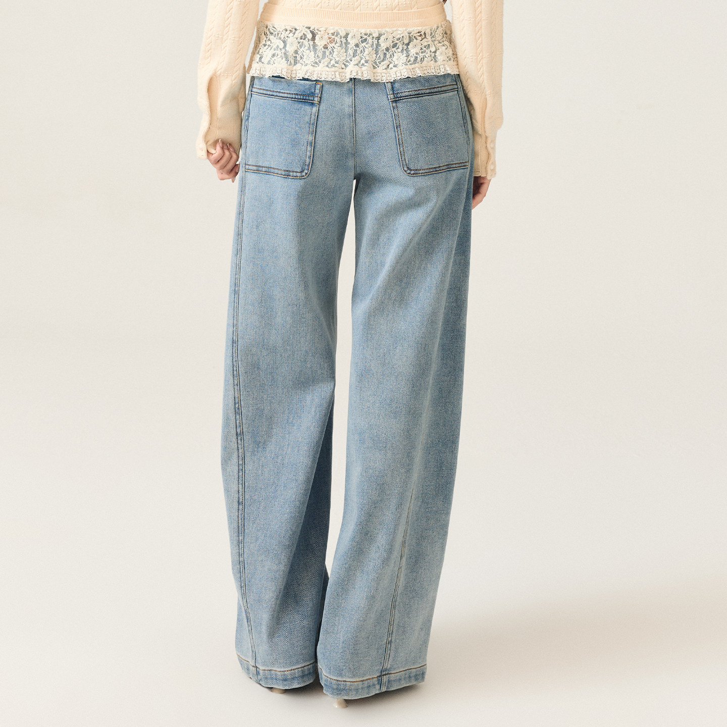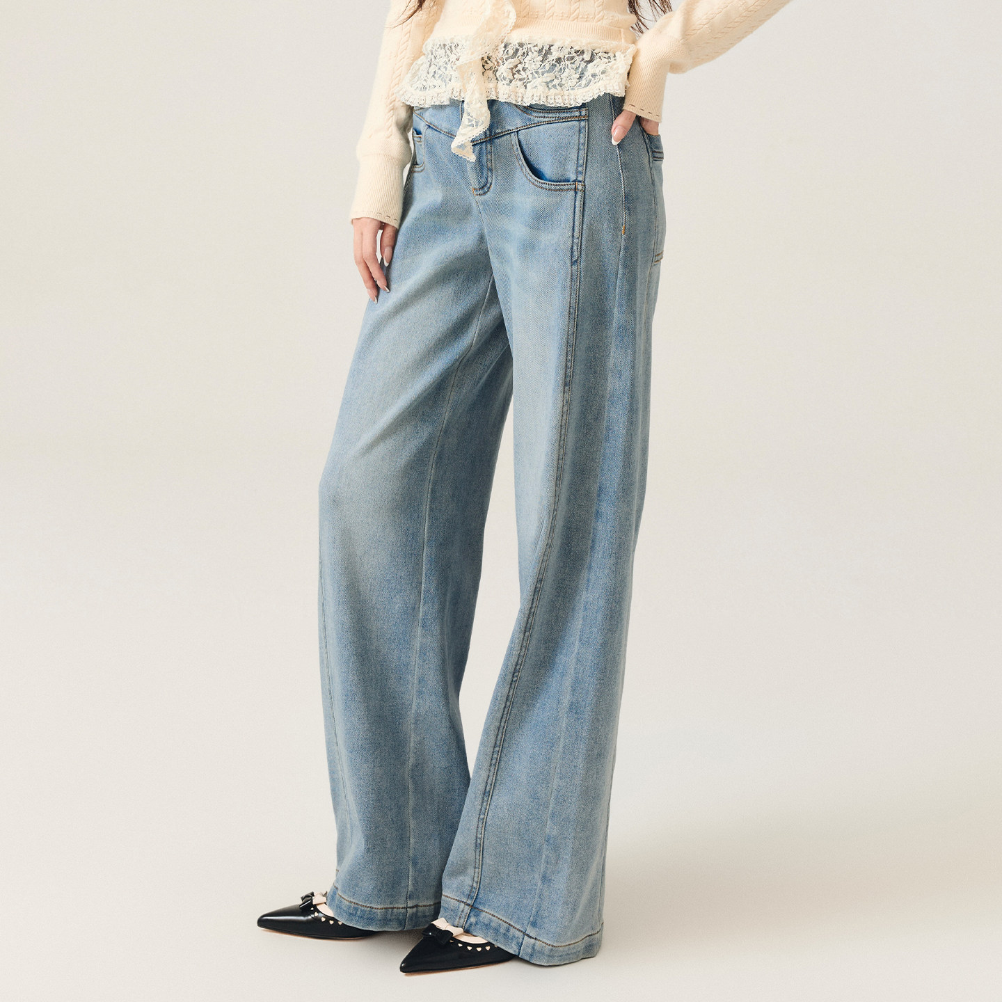子显瘦 女弯刀裤 lefame拉飞姆复古港风做旧磨白微喇裤 阔腿牛仔裤