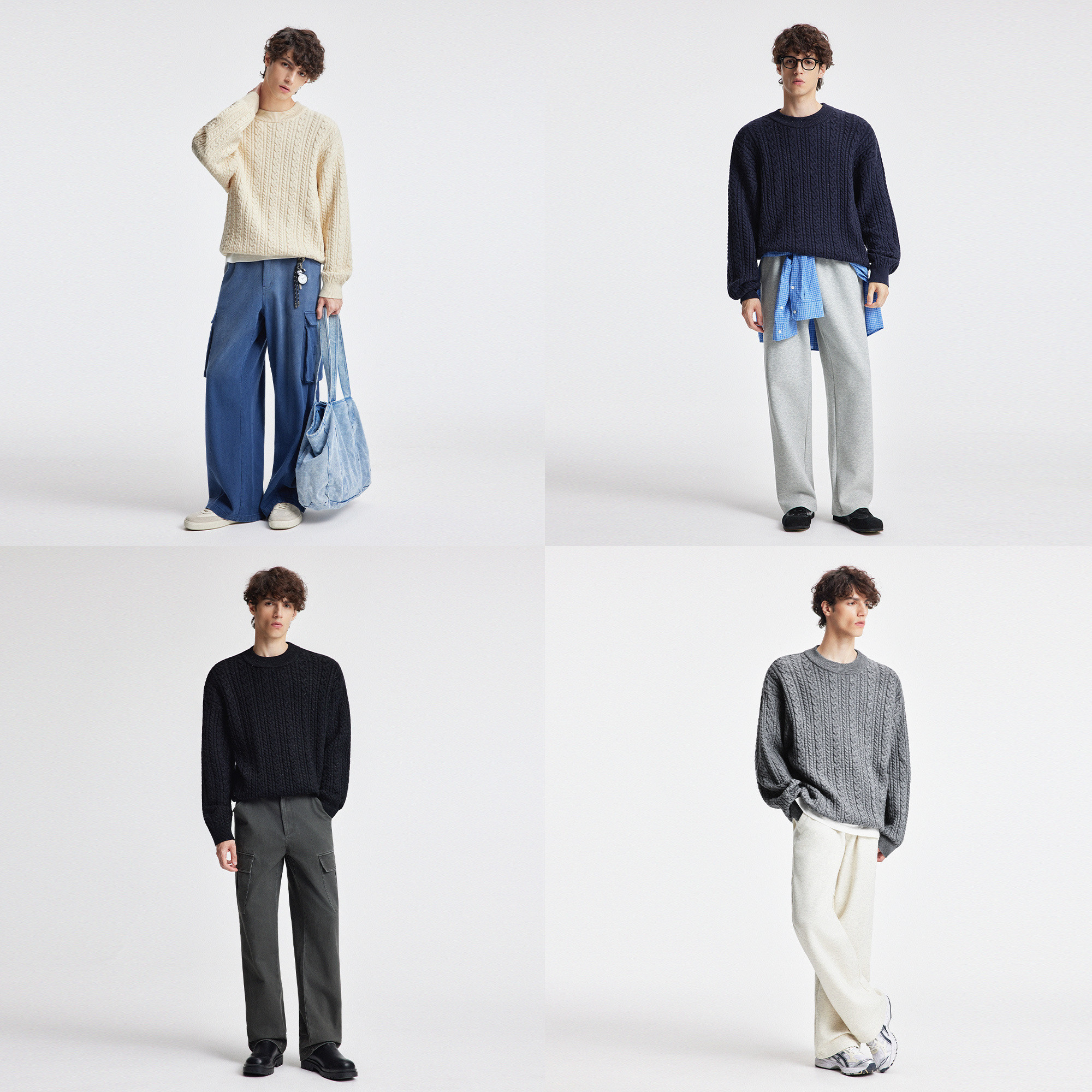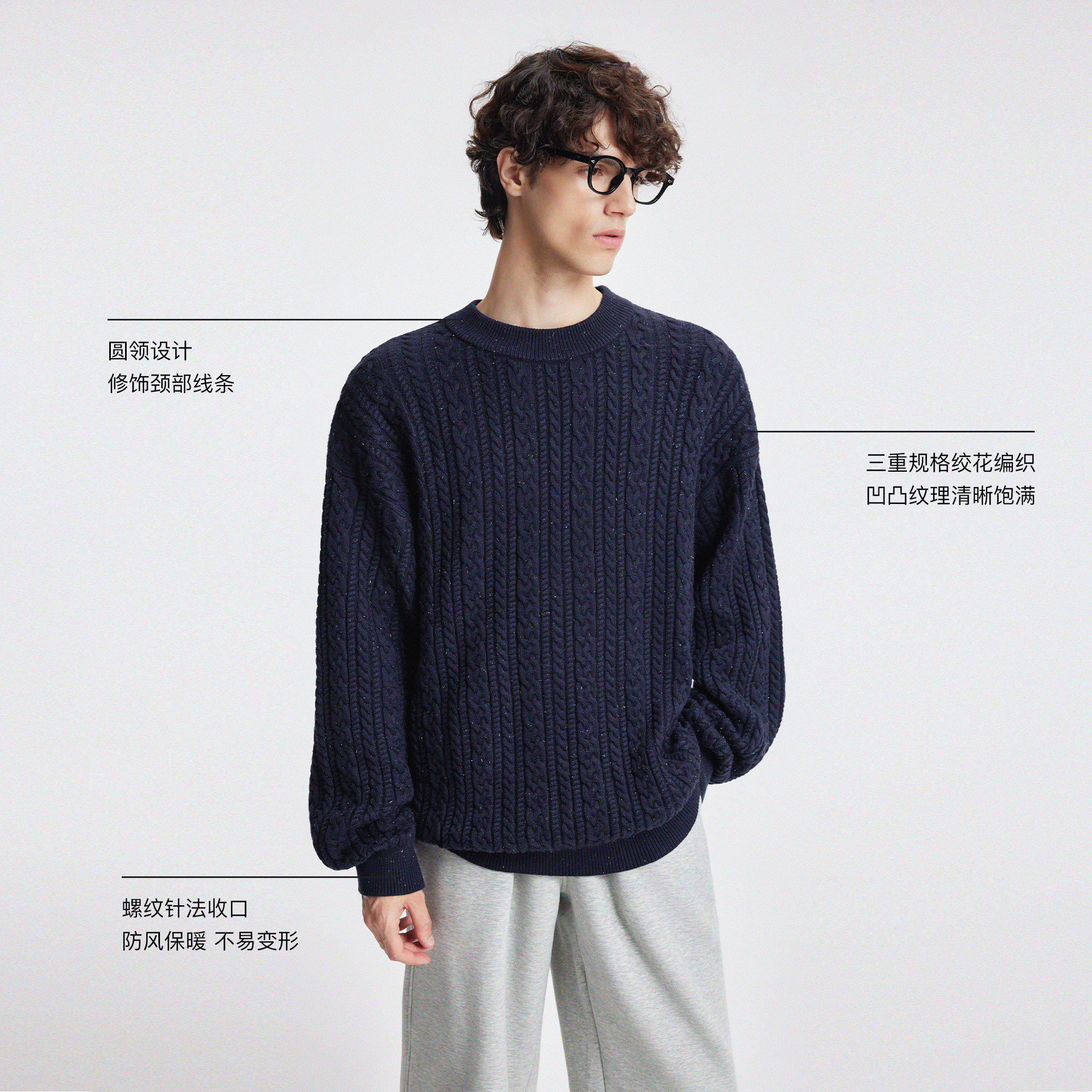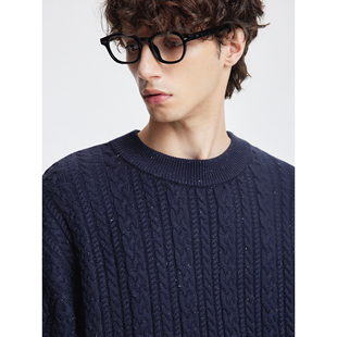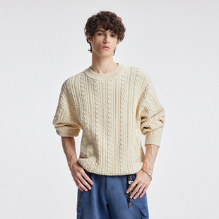 BODYDREAM抗起球粗针绞花毛衣男夹银纱针织衫 老钱通勤毛线衣 新款