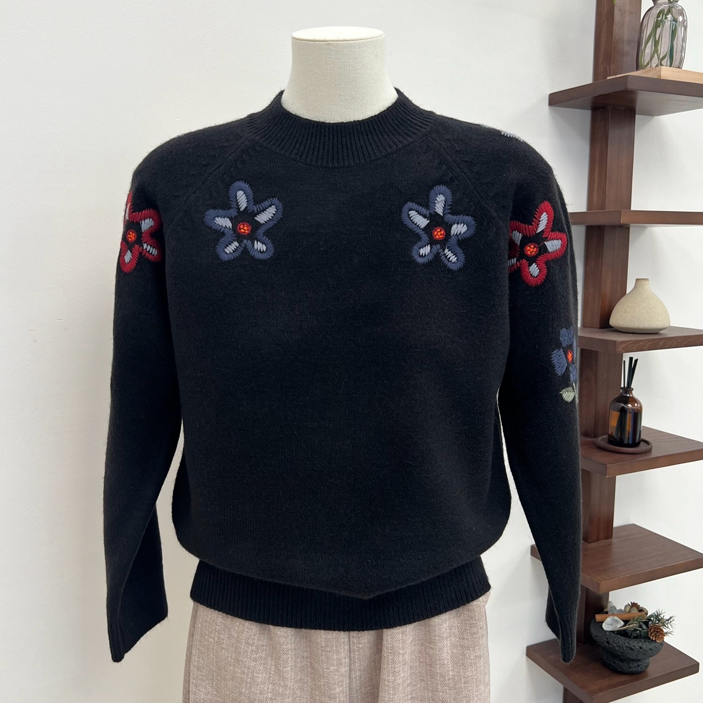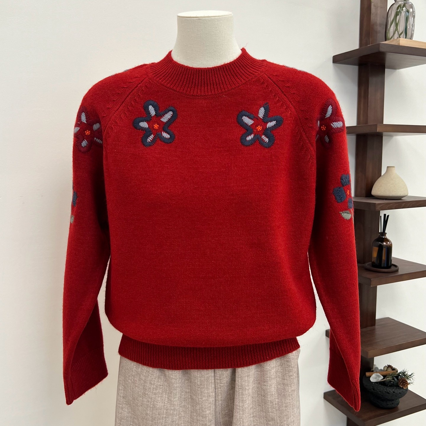 奶奶装 加厚加绒针织衫 半高领花朵仿貂毛毛衣中老年妈妈装 中年女装