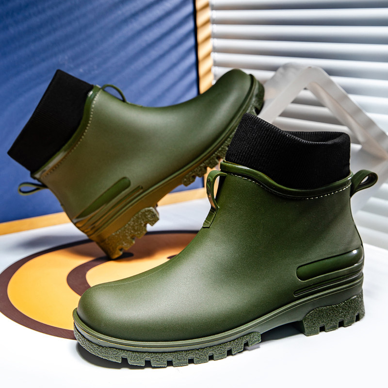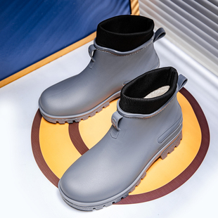 短筒防水防滑厨房洗车加绒一体耐磨保暖胶鞋 加大码 男款 雨鞋 48码