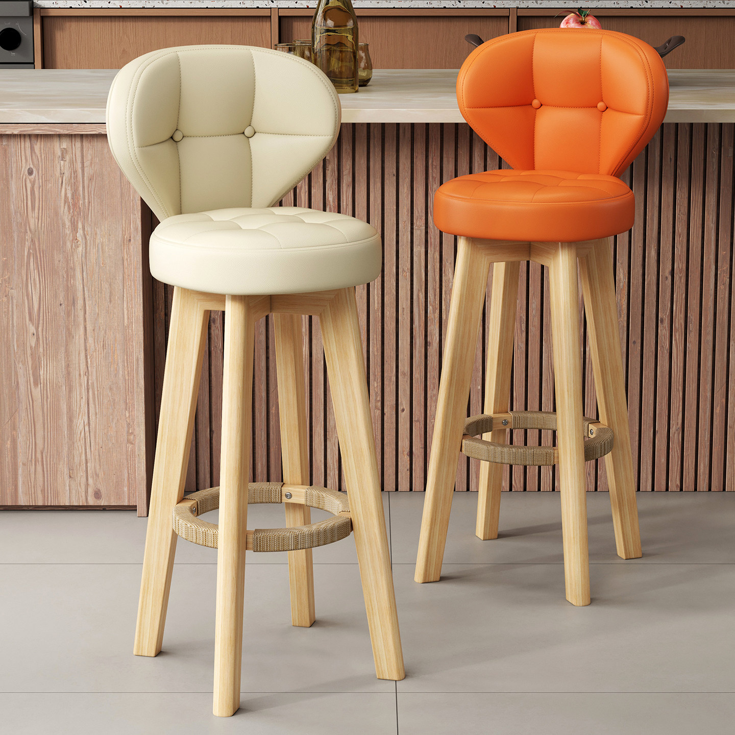 可折叠吧台椅高脚凳家用收银台酒吧餐厅椅子客厅靠背实木现代简约