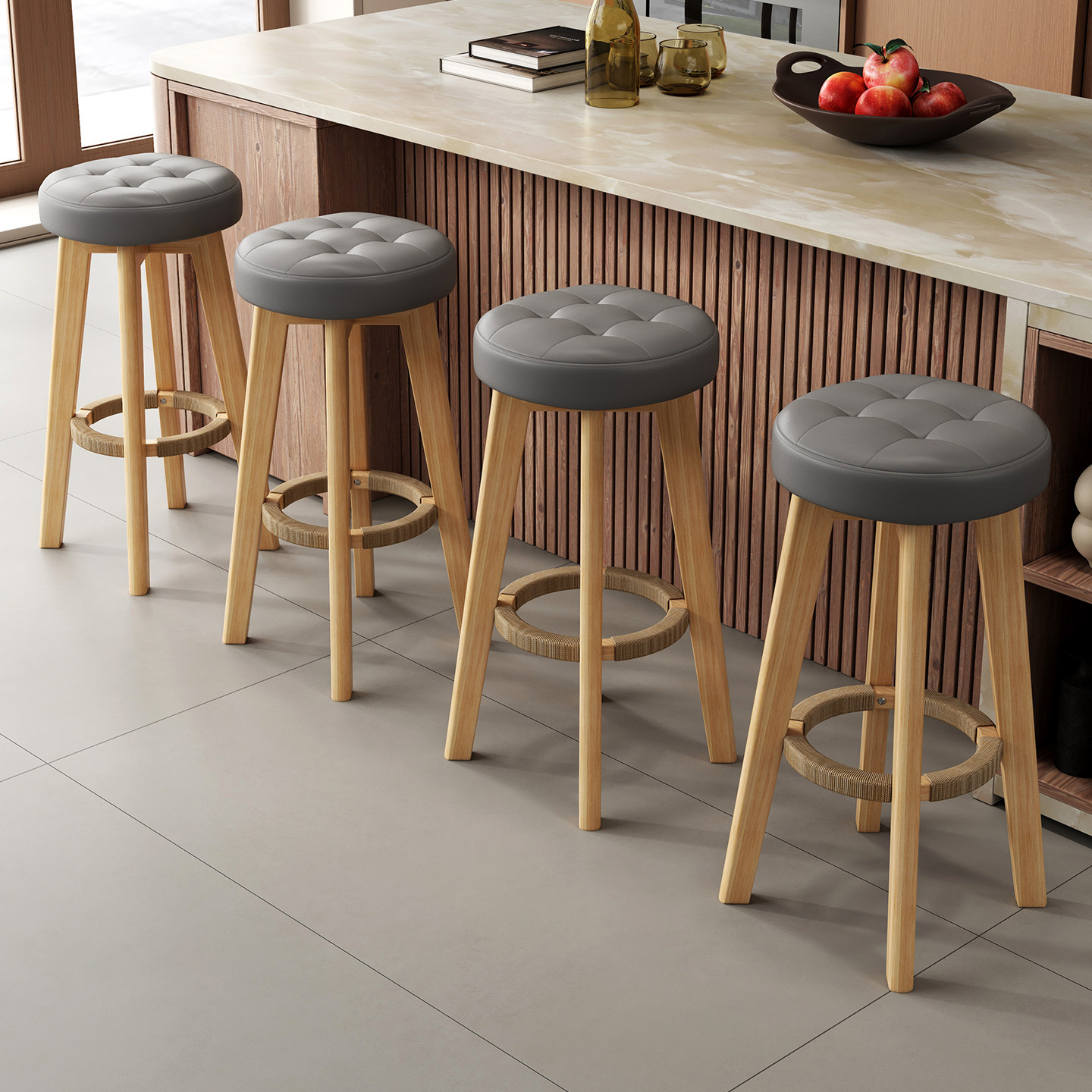 实木高脚凳子梯凳前台奶茶酒吧椅商用简约复古凳家用圆凳成人高凳