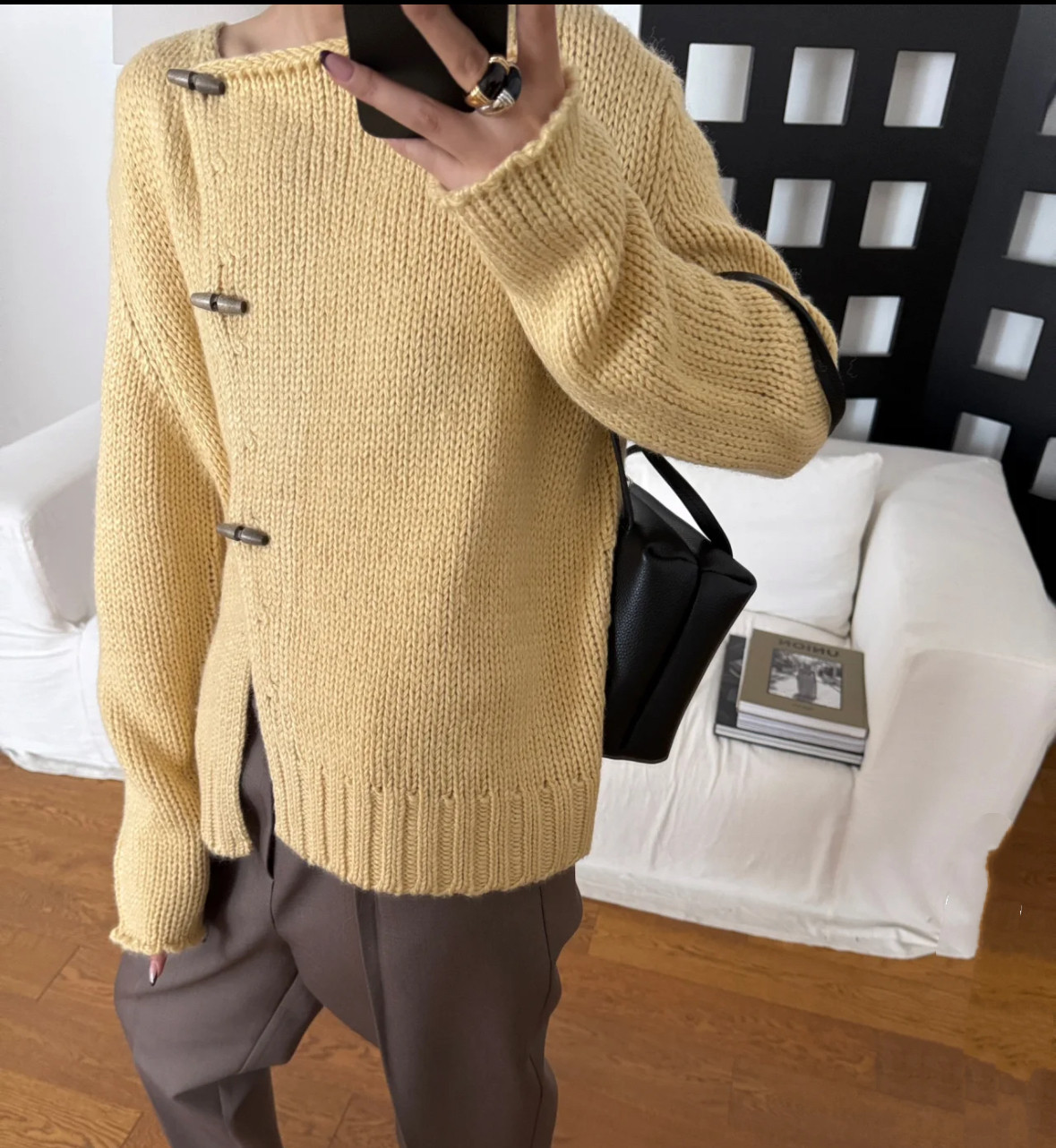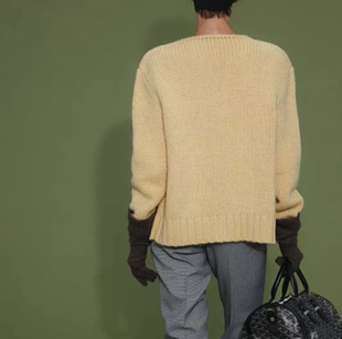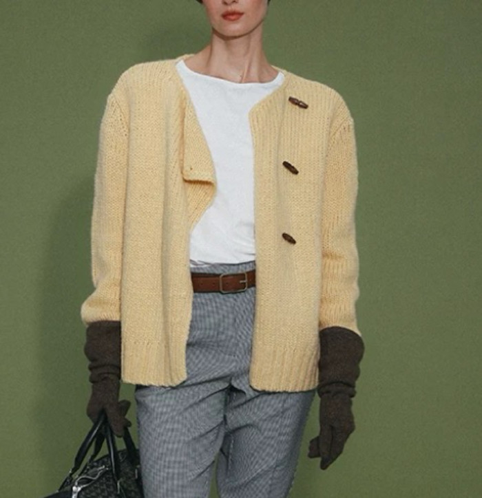 老钱风奶黄色斜门襟重磅毛衣开衫 ROO