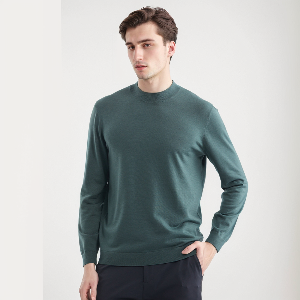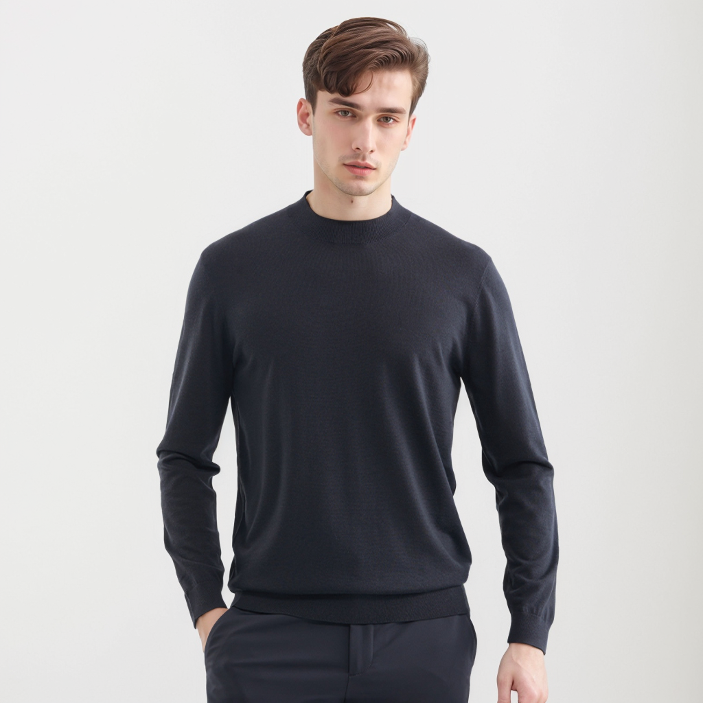 毛衣 半高领软糯宽松套头针织打底衫 双股加厚100%纯羊毛衫 男秋冬季