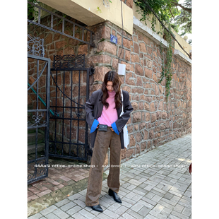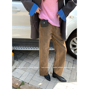 九分裤 特殊做旧面料直筒显瘦皮裤 王 牛皮棕咖显瘦修身 新版 44AaSi