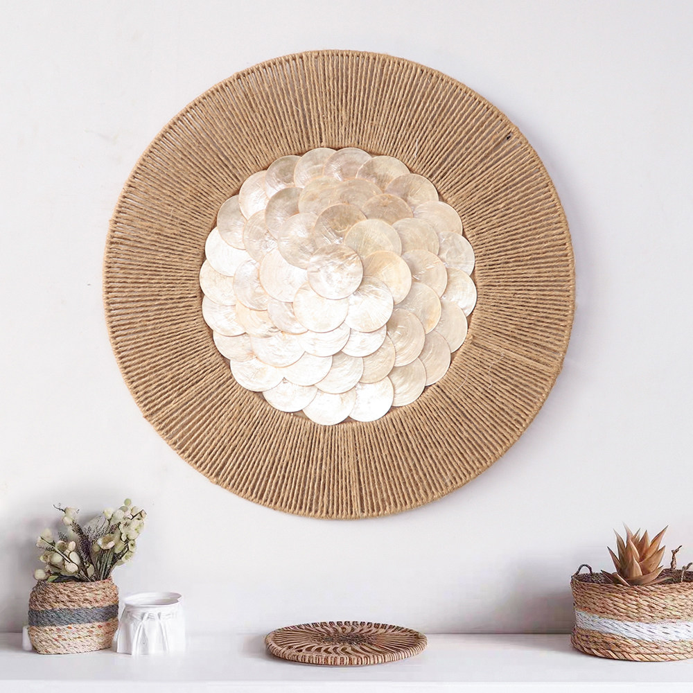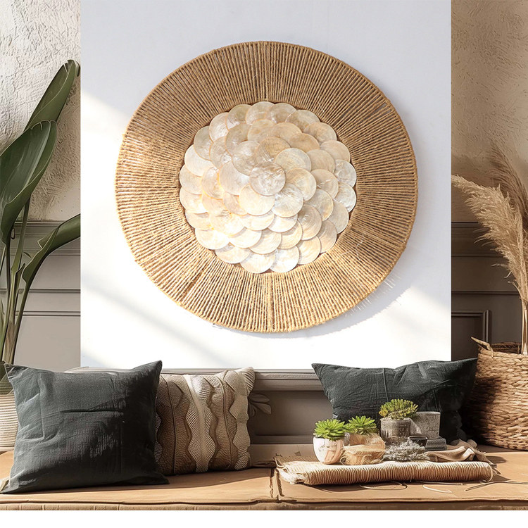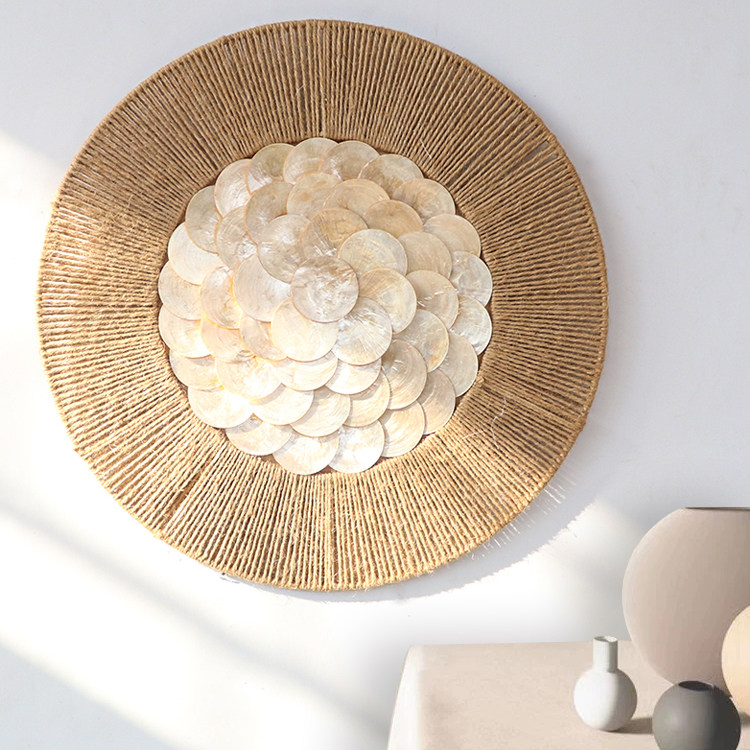 东南亚风贝壳草编挂饰民宿酒店玄关壁饰客厅店铺墙壁挂饰装 饰品