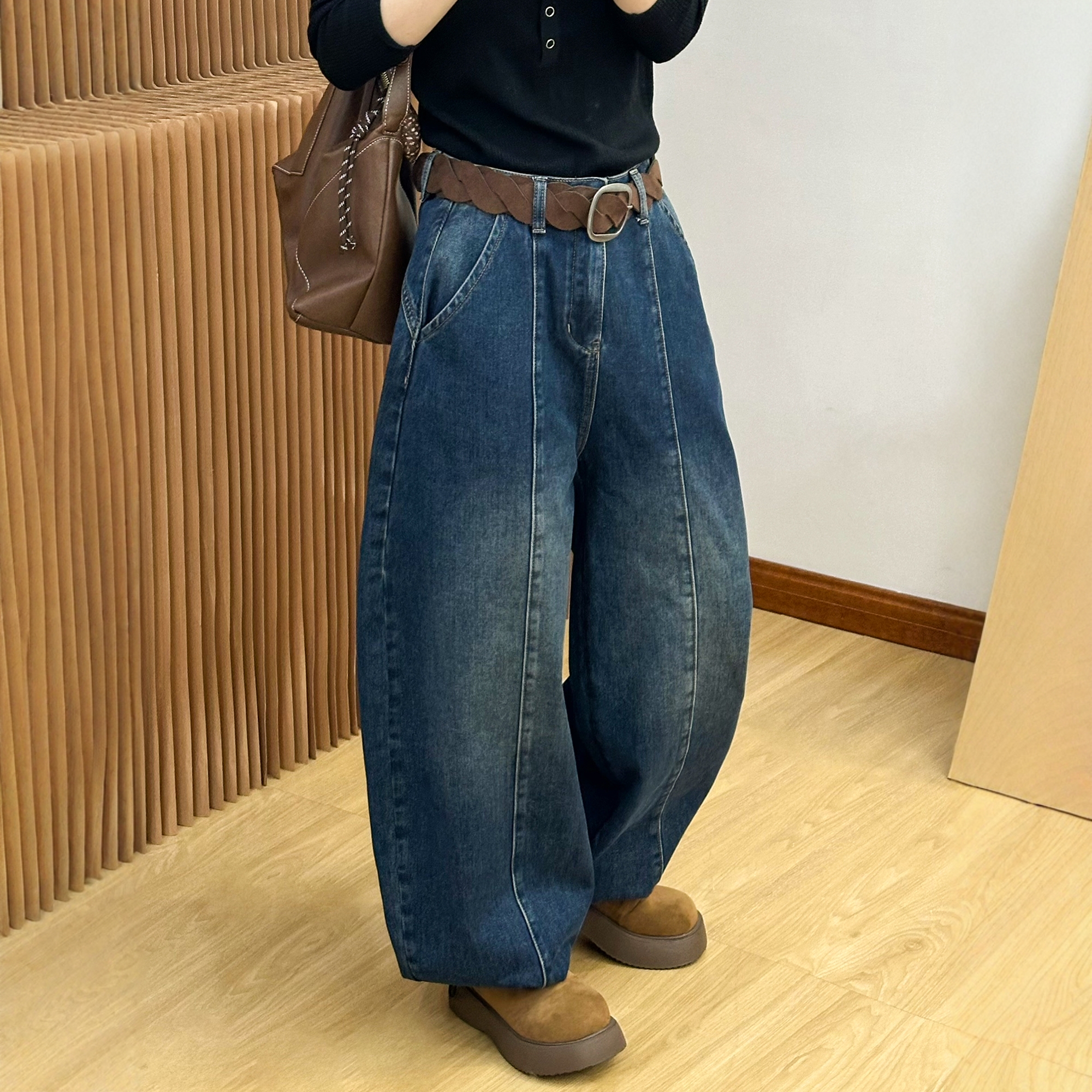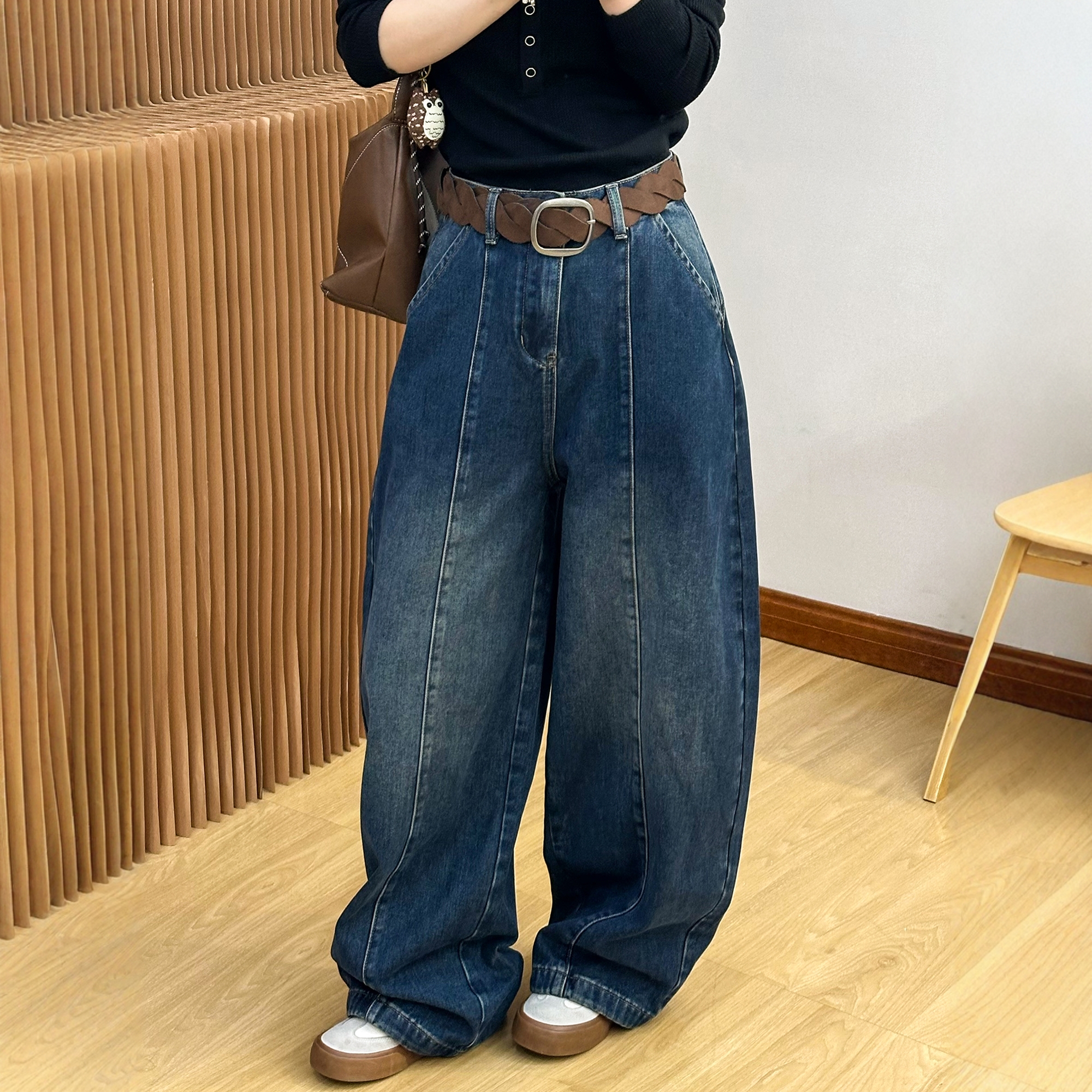 阔腿裤 复古拖地弯刀加绒牛仔裤 欧货女装 新款 子潮 女欧洲站2025秋装